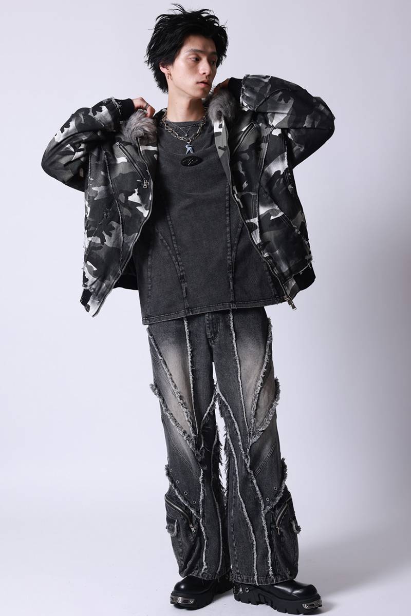 ブランドが得意とする切替デザインとスプレーでの染色によるグラデーションがグランジの風合いを醸し出します。