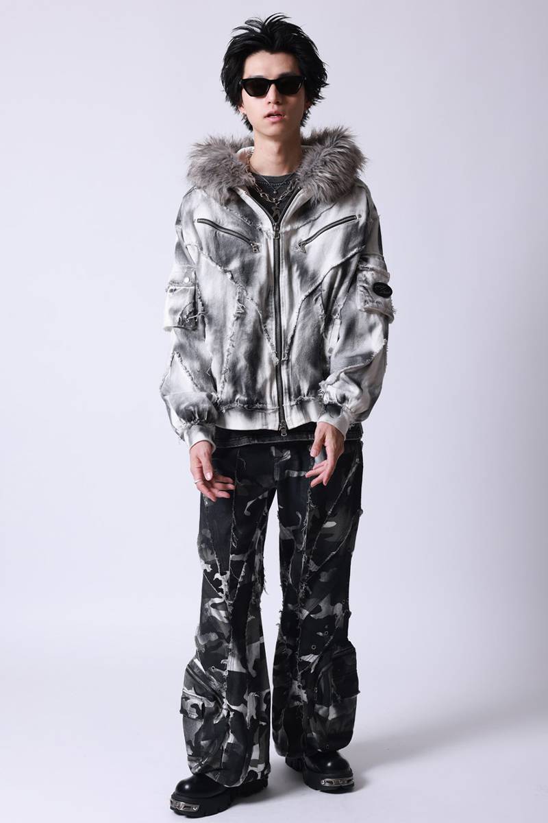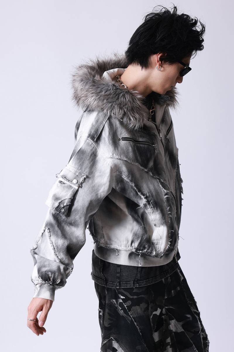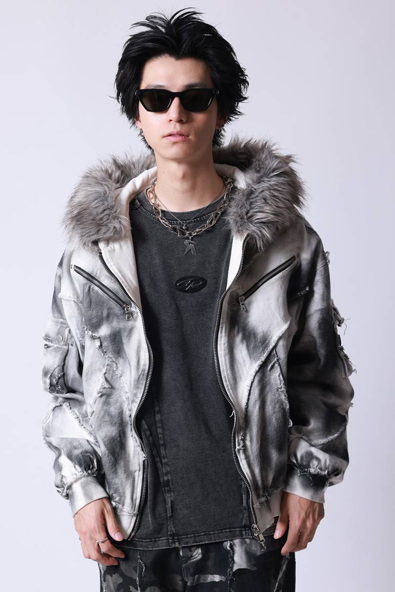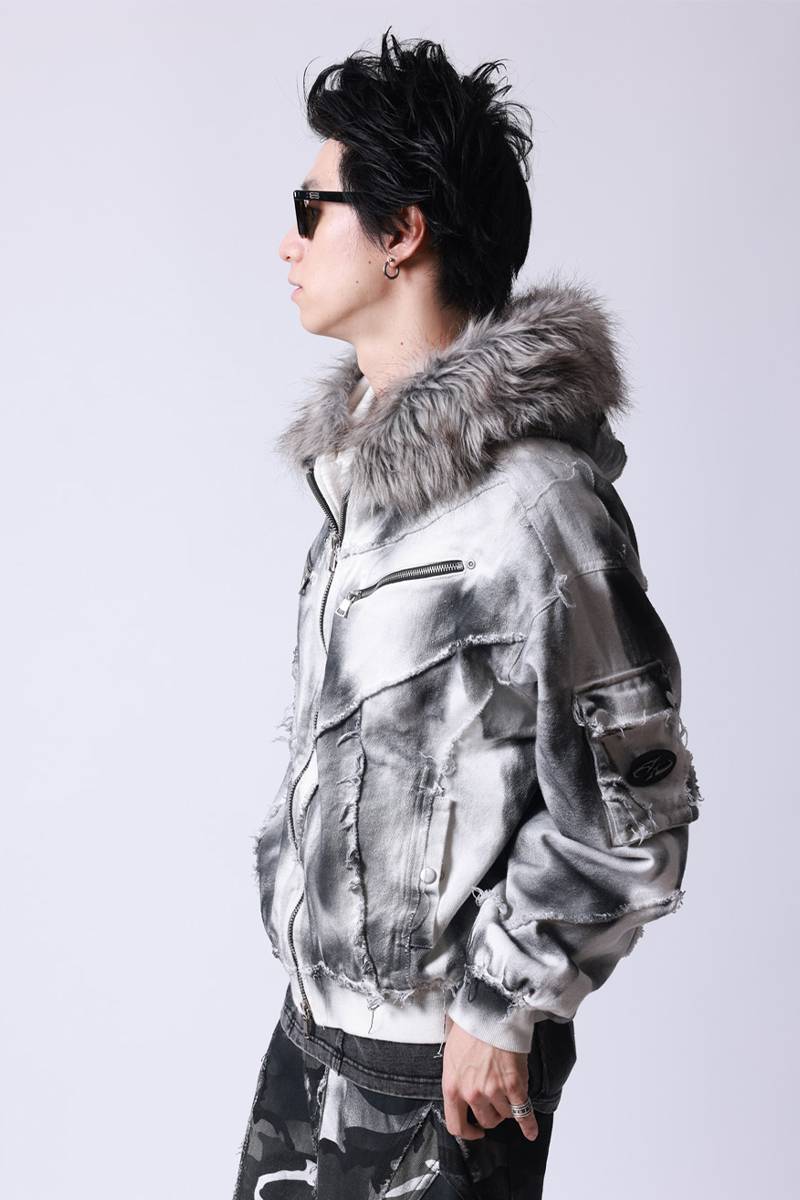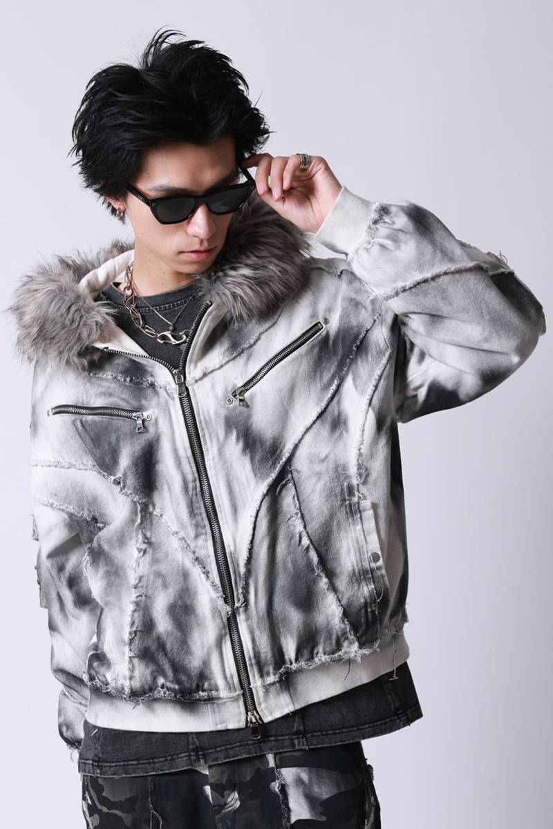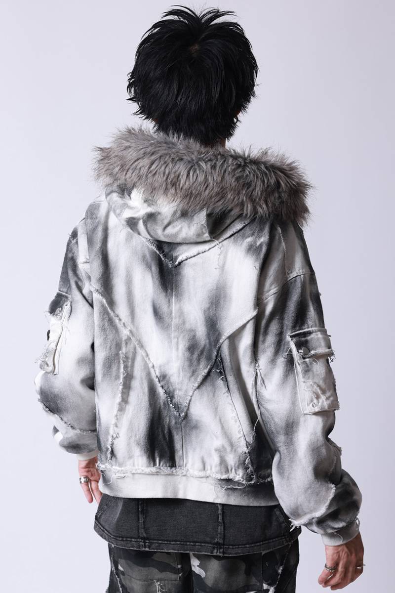 P.N UNDERGROUND(サイコ・ネーション・アンダーグラウンド) ファー脱着スプレーフードブルゾン - White
