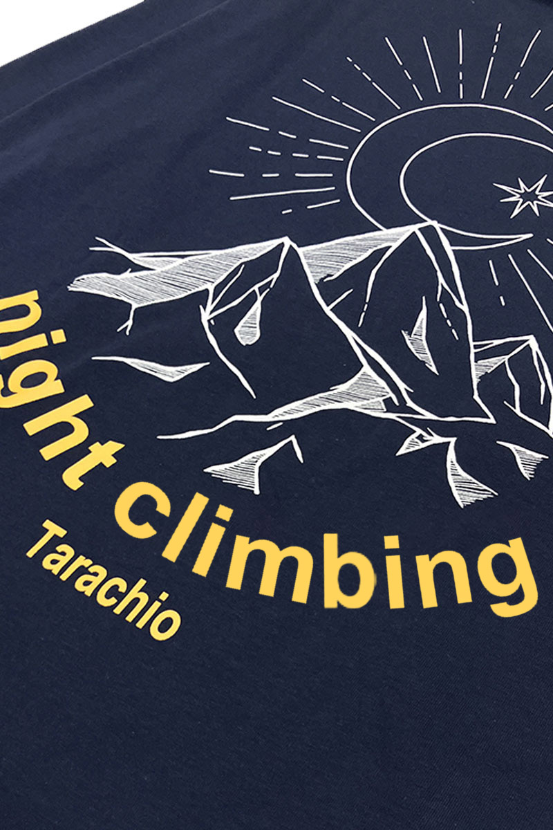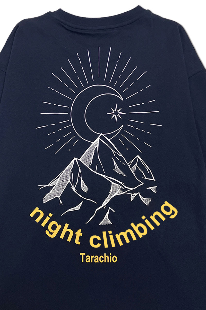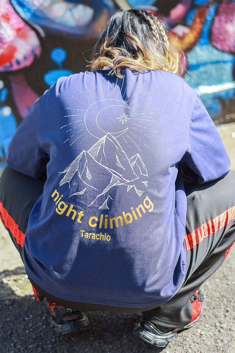胸に「night climbing」本コラボ・オリジナル・ロゴの刺繍、袖にはピスネームを施した。