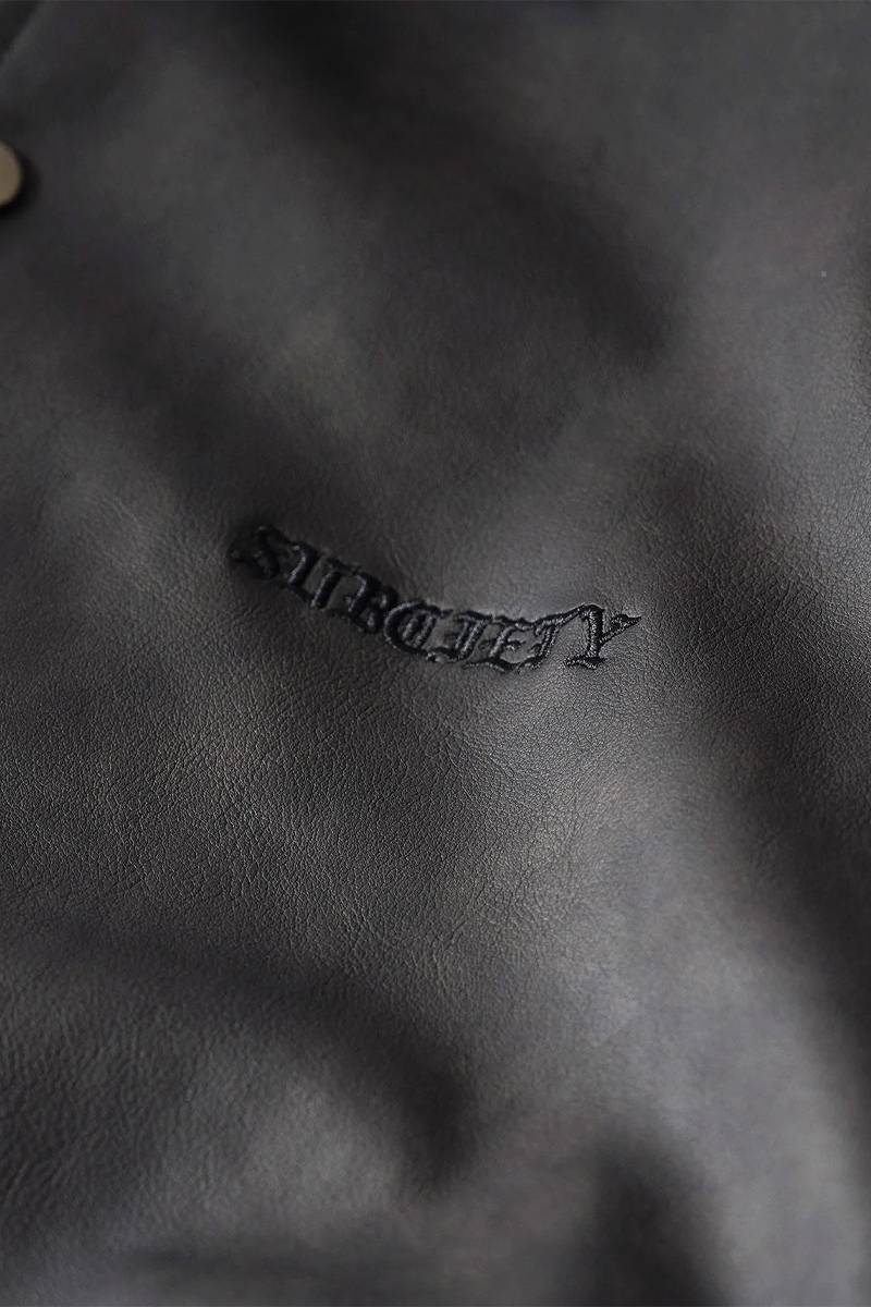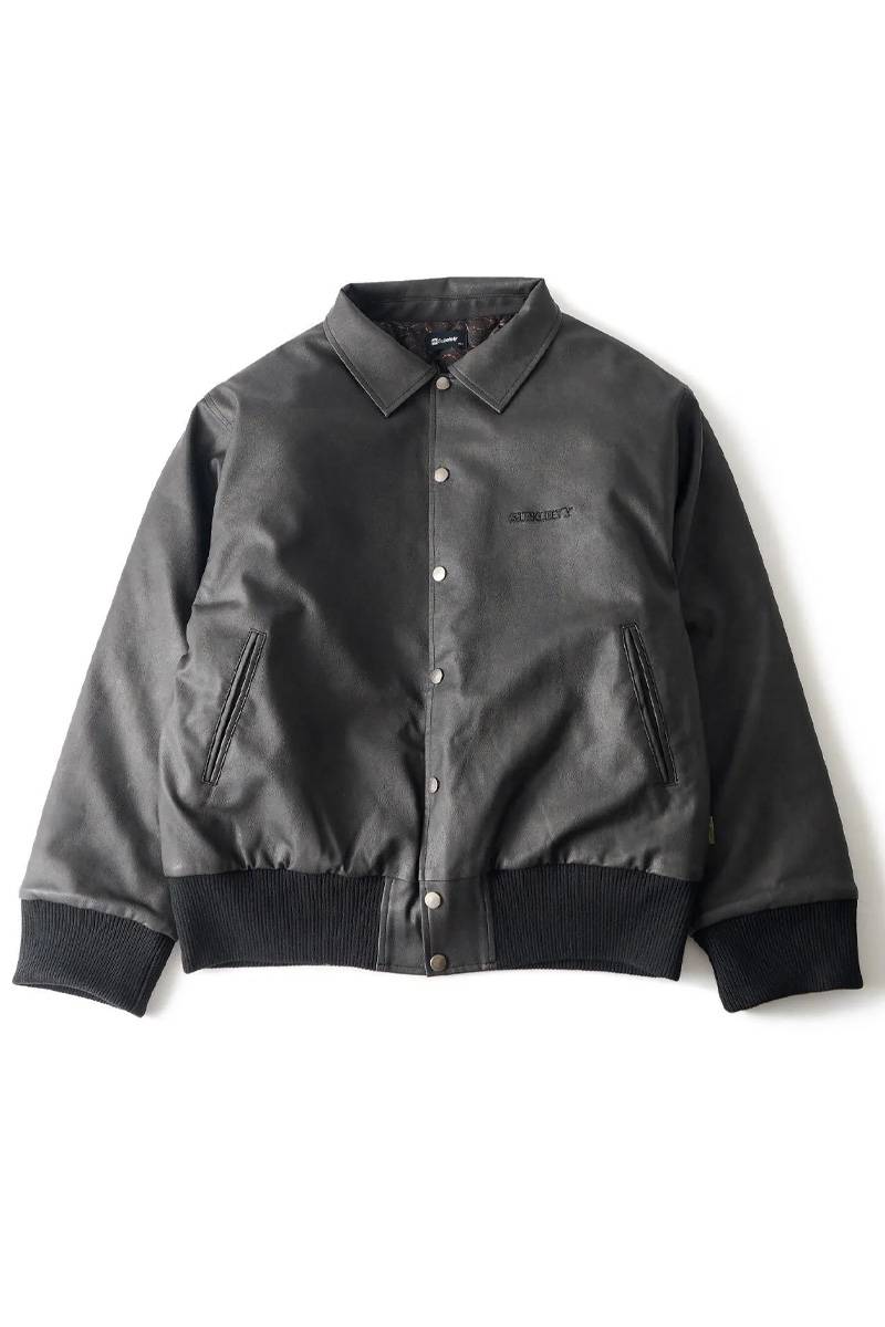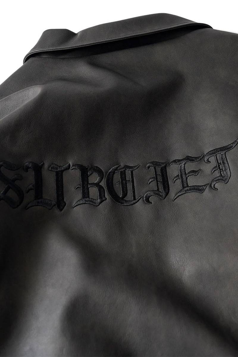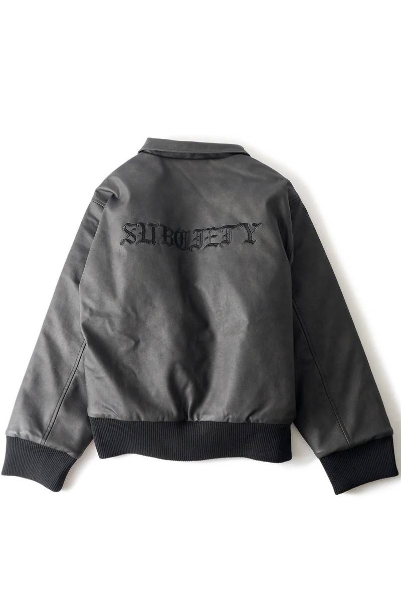 Subciety (サブサエティ) Faux leather varsity jkt - Black