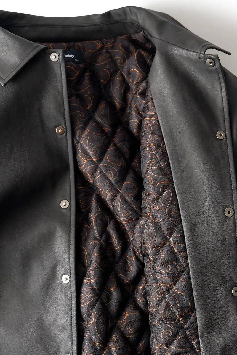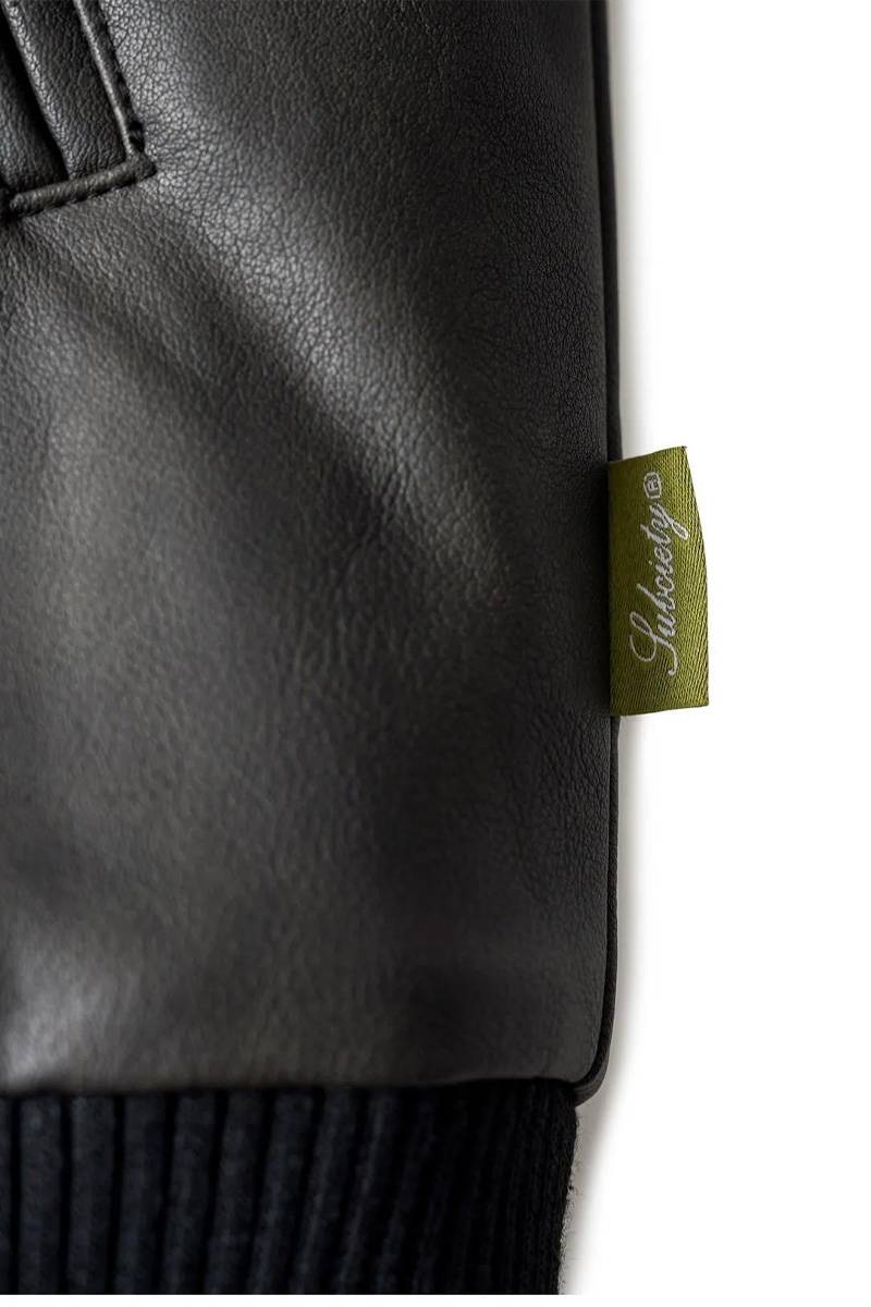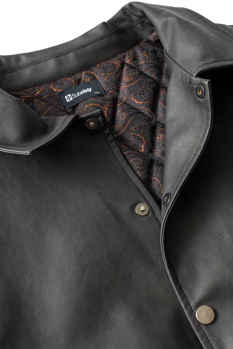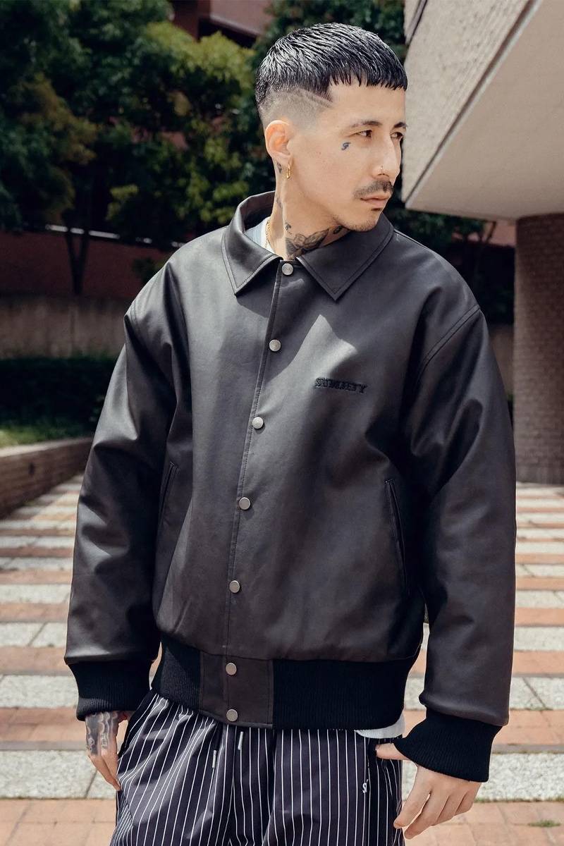 Subciety (サブサエティ) Faux leather varsity jkt - Black