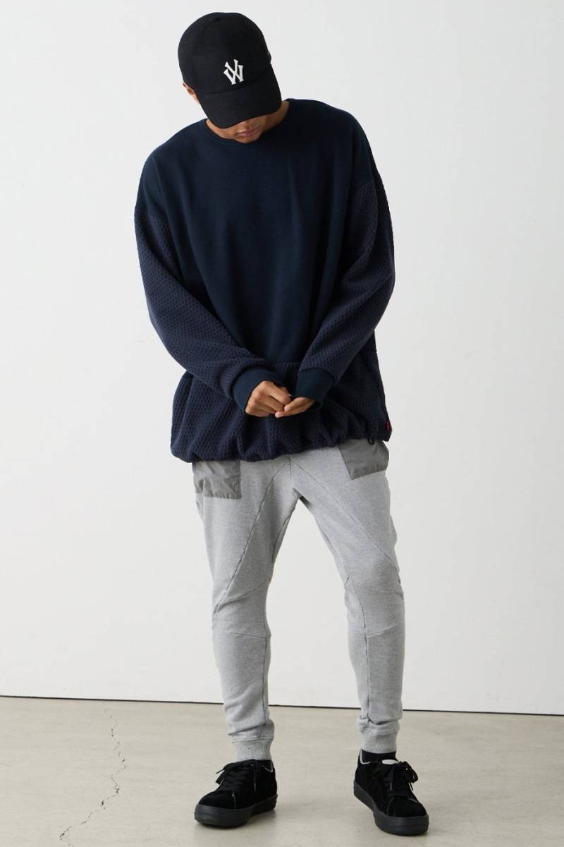 裏毛とフリースをMIXさせたクルーネックスウェット。