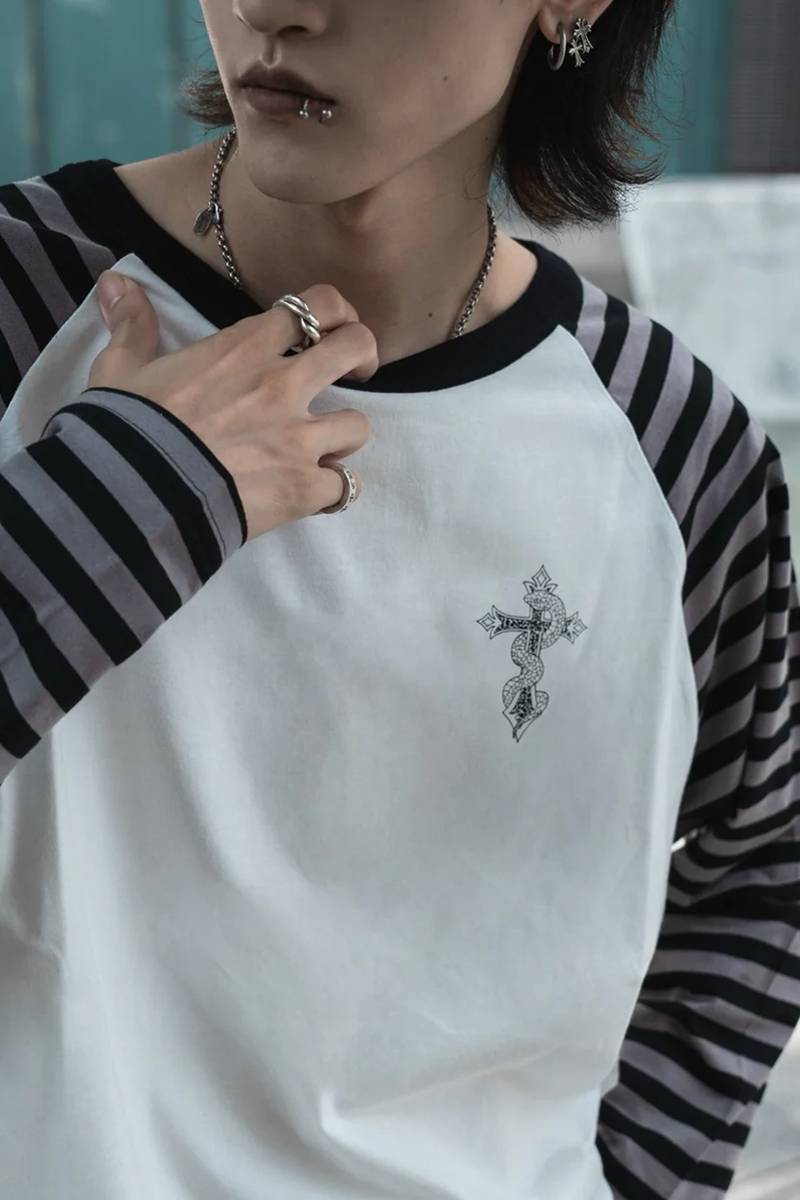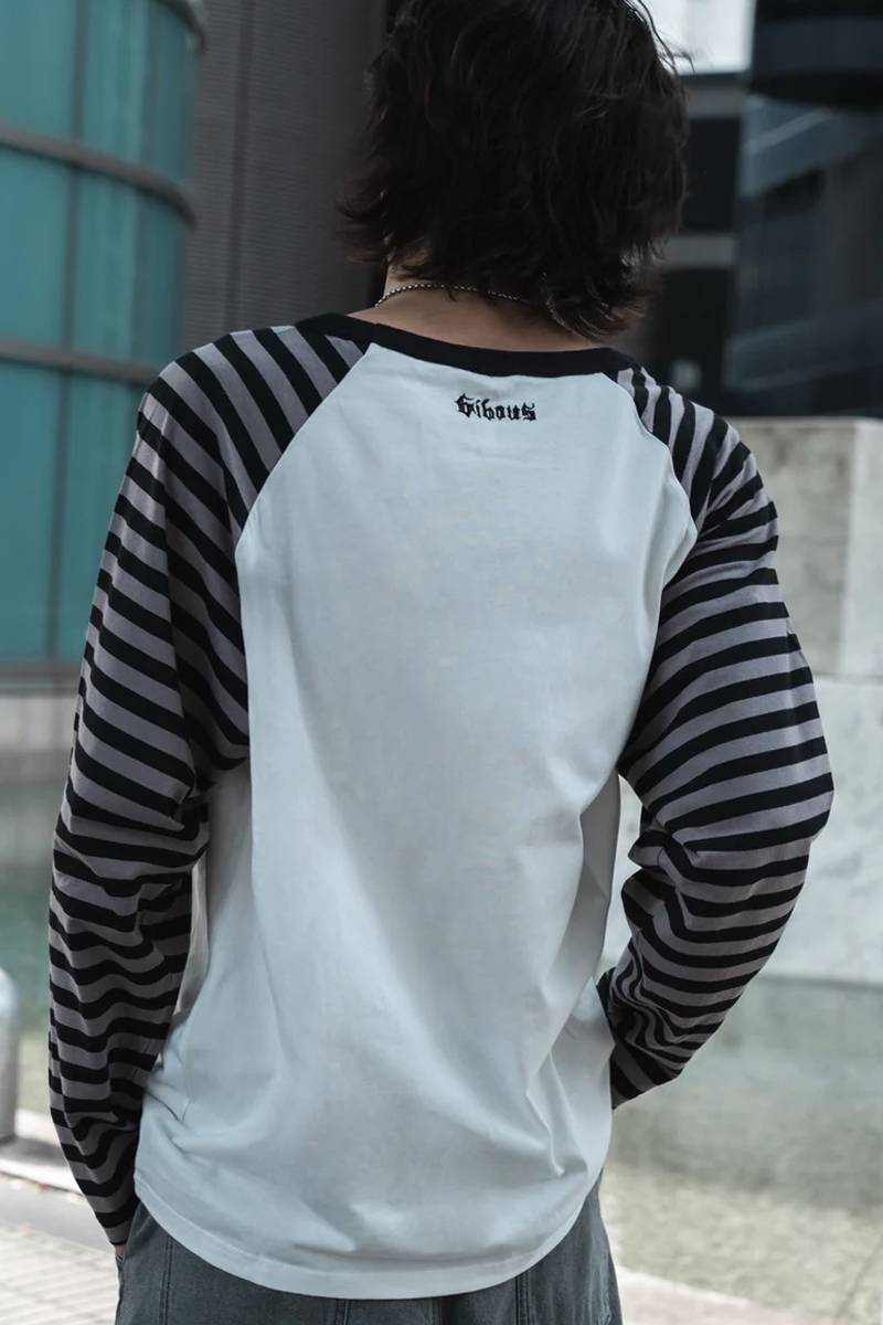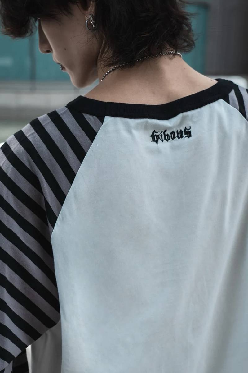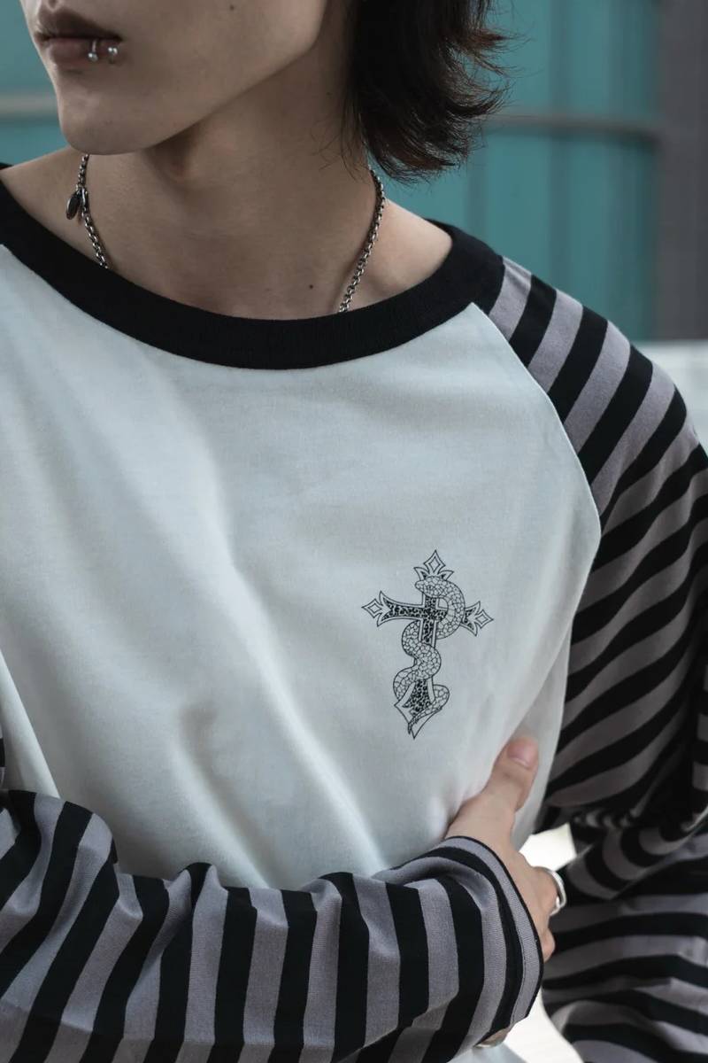 gibous (ギボス) border snake cross raglan long tshirt