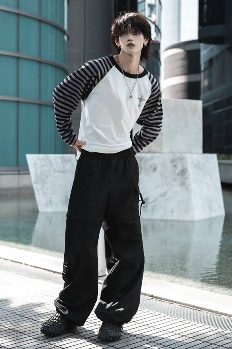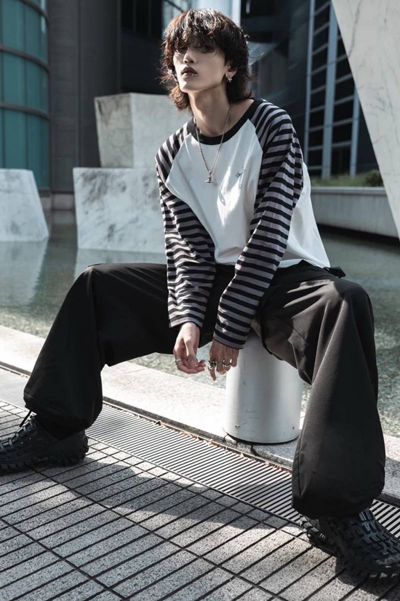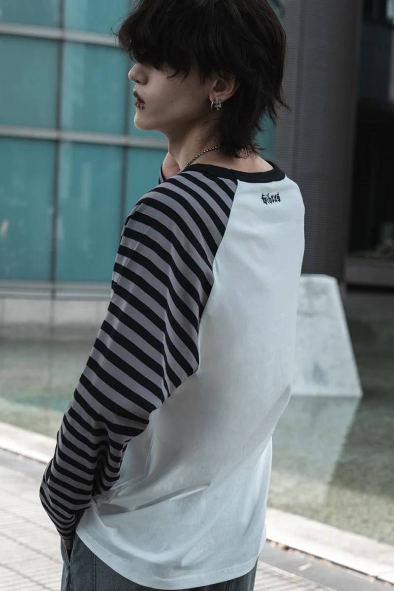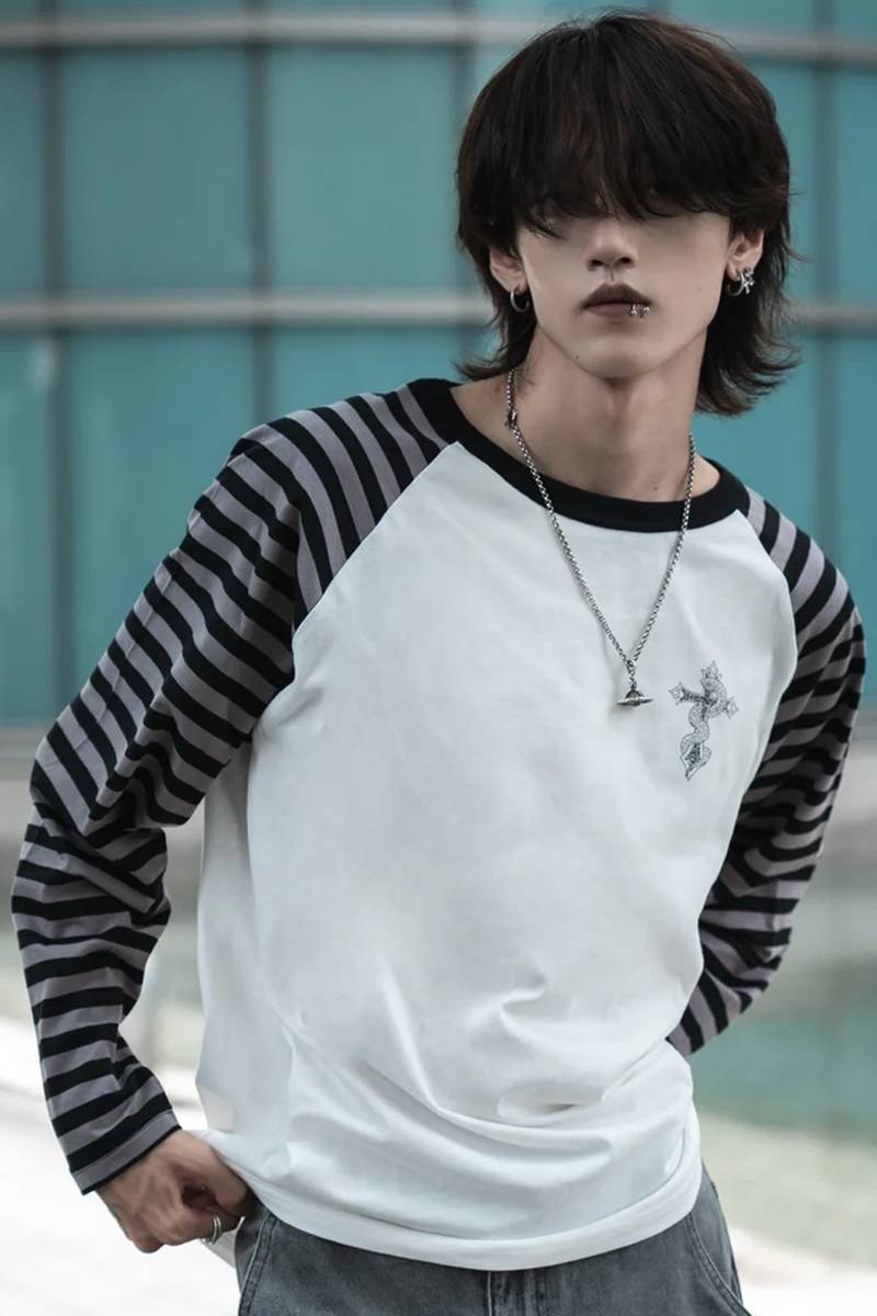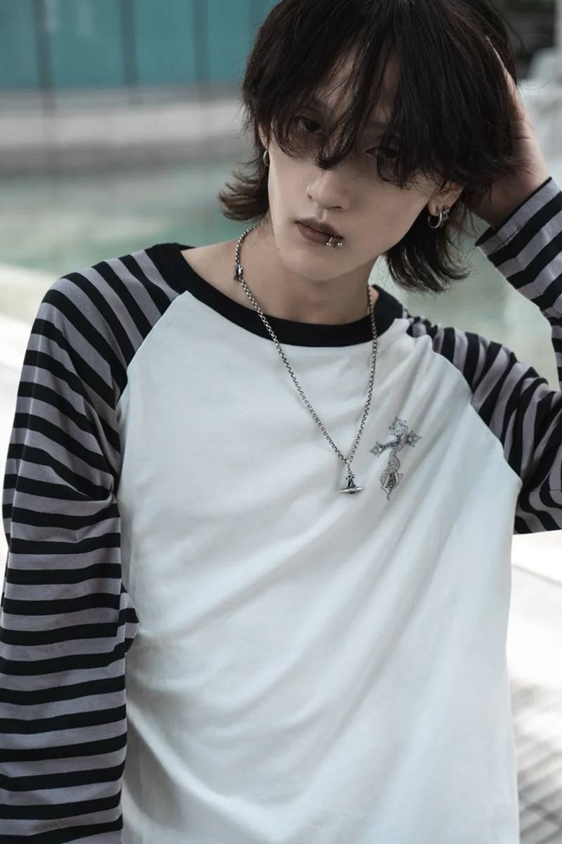 gibous (ギボス) border snake cross raglan long tshirt