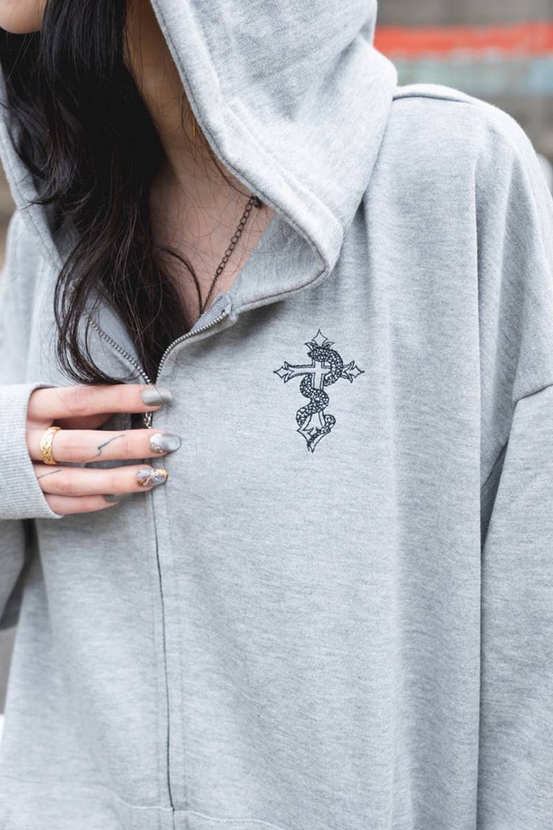 胸元にクロススネーク刺繍が入ったパーカーです!!
