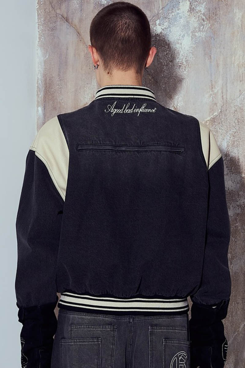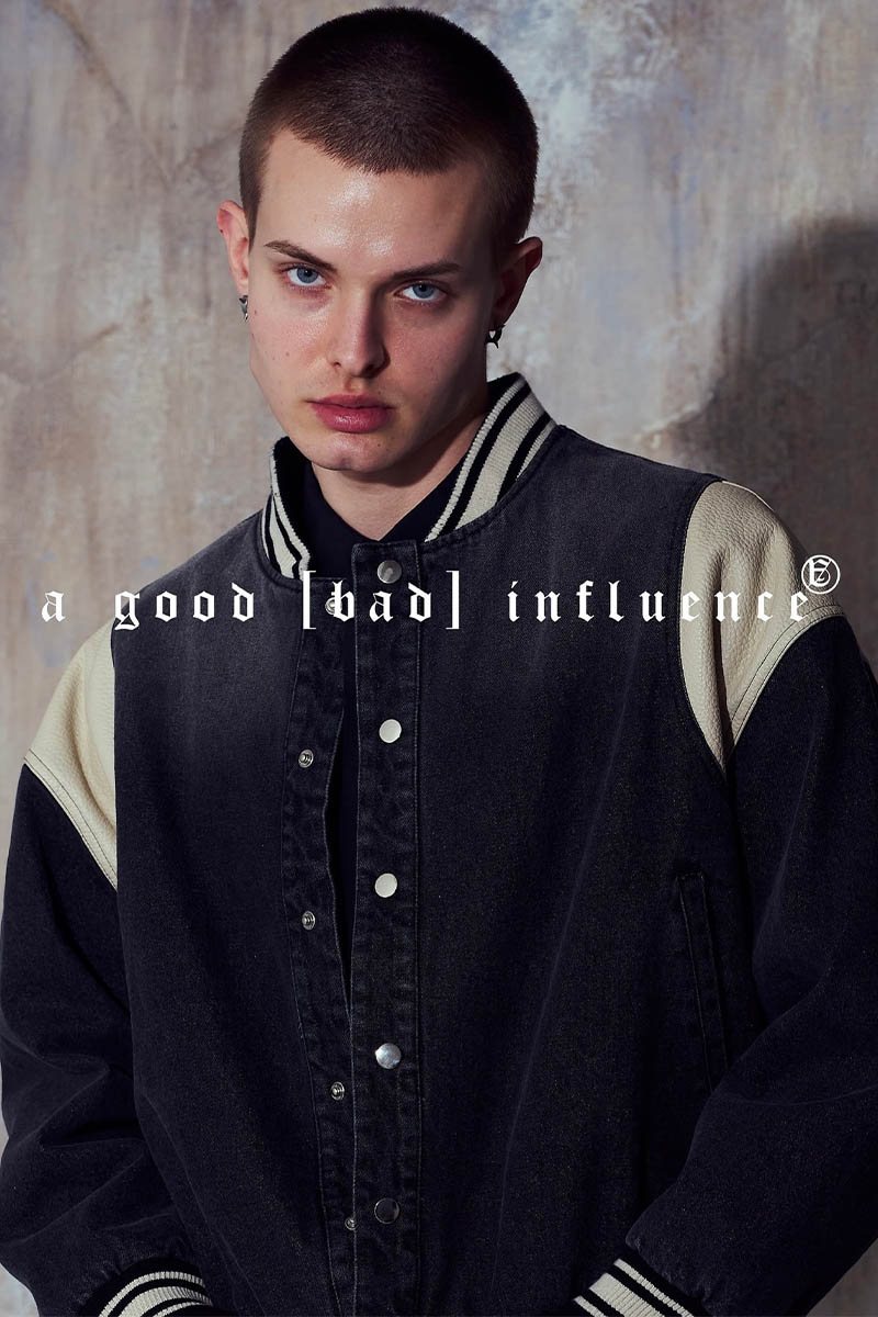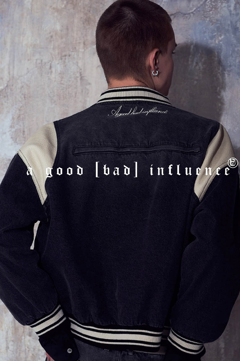 A Good Bad Influence (ア・グッド・バッド・インフルエンス) DENIM VARSITY JACKET - Black