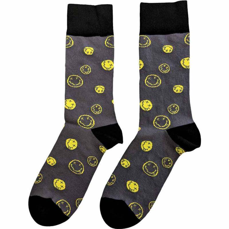 【予約商品】NIRVANA Unisex Ankle Socks: Mixed Happy Faces (Charcoal Grey) (UK Size 4 - 7)
