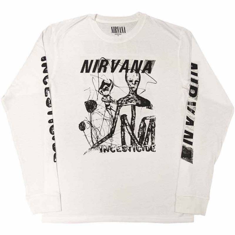 【予約商品】NIRVANA Unisex Long Sleeve バンドTシャツ: Incesticide (White) (Back & Sleeve Print)