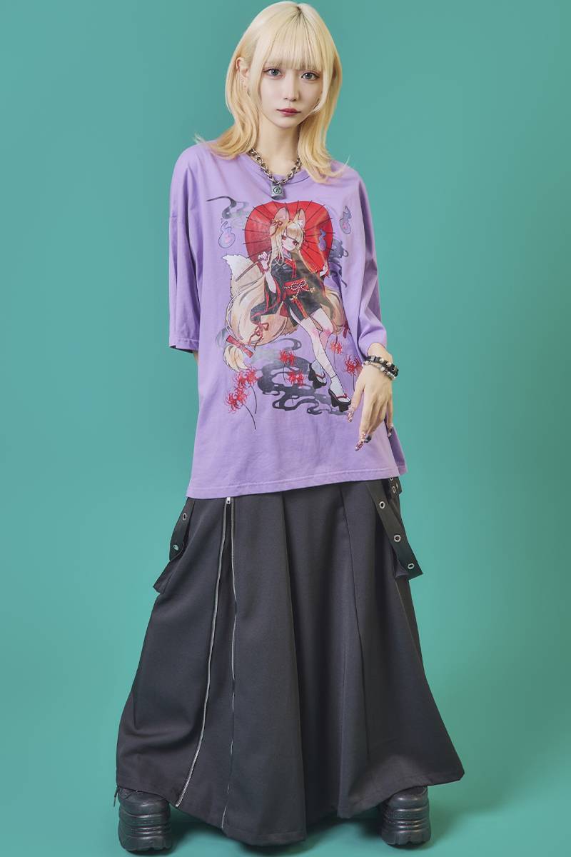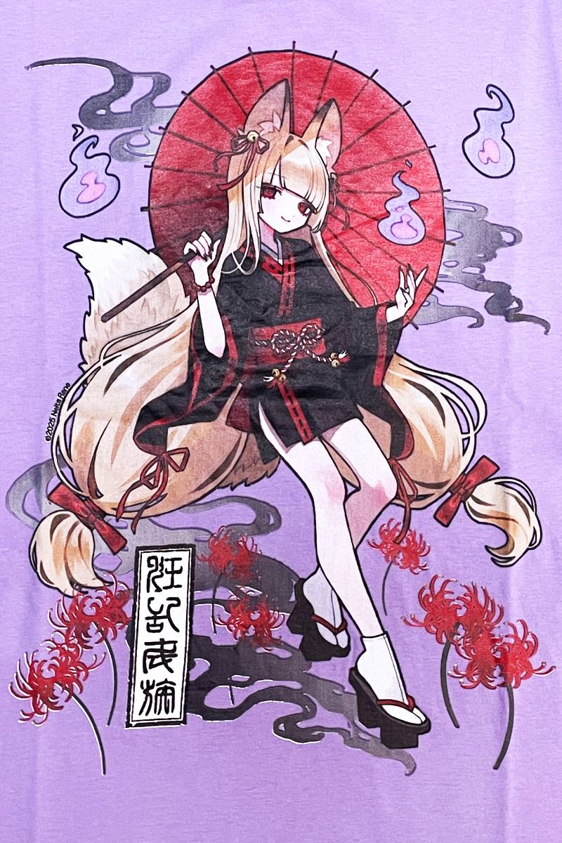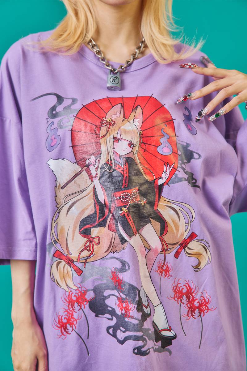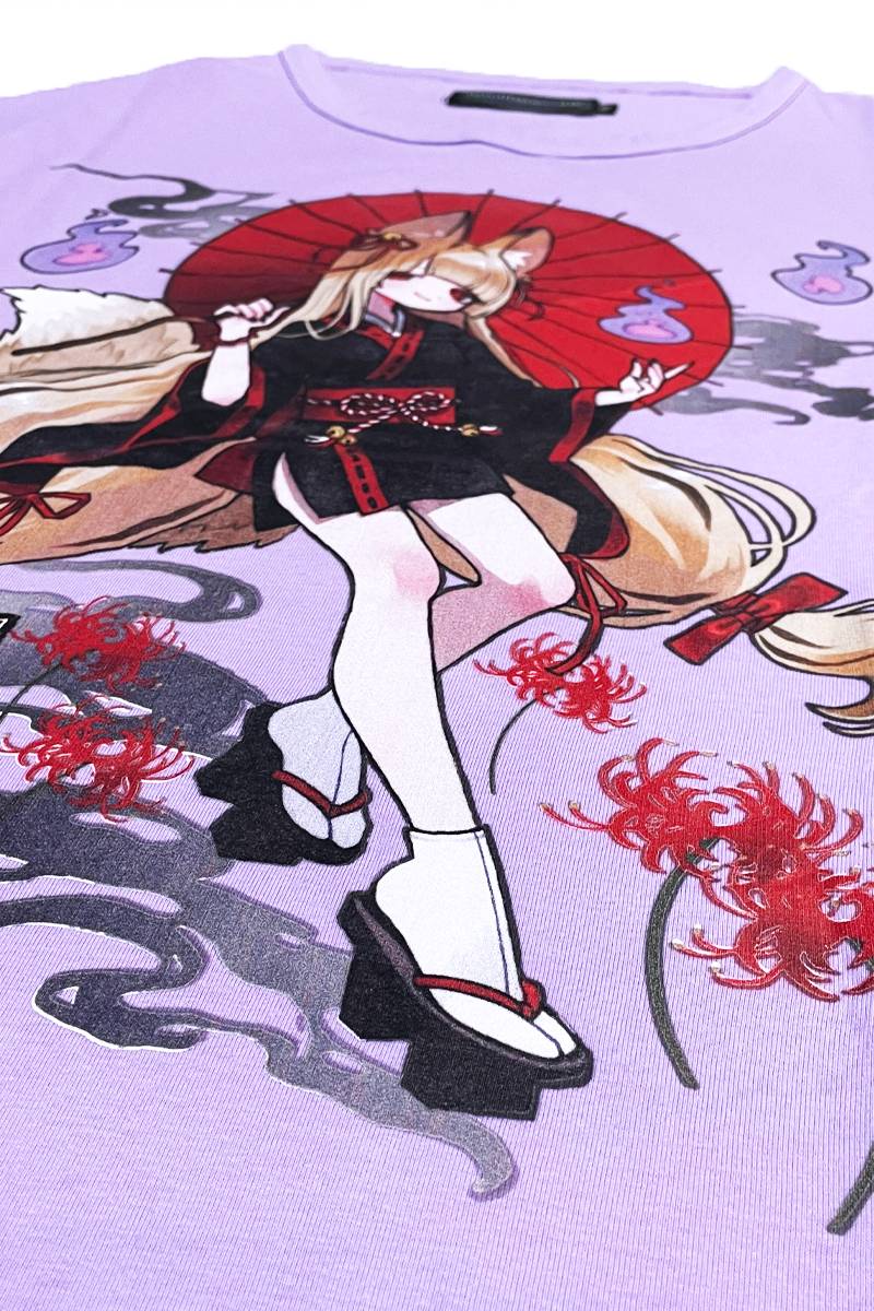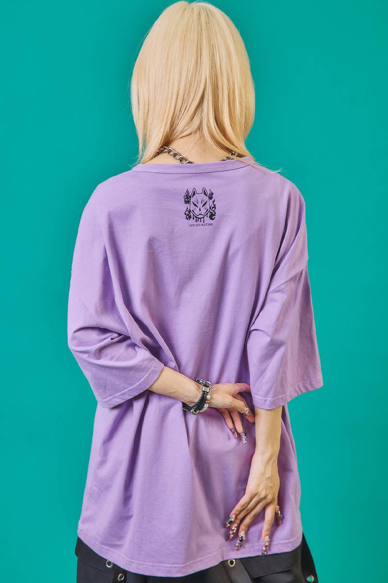 寝田ルネ×PSYCHO NATION(サイコ・ネーション) キツネ着物Tee - Purple