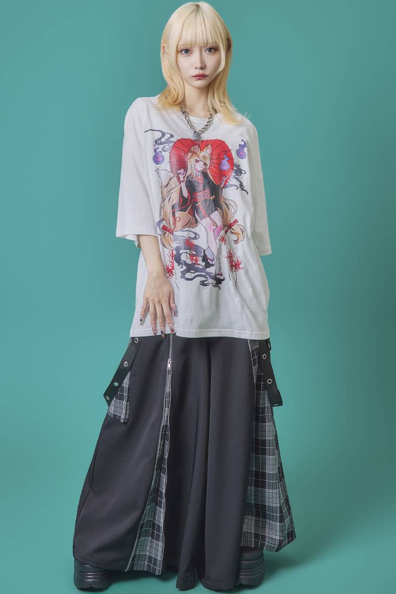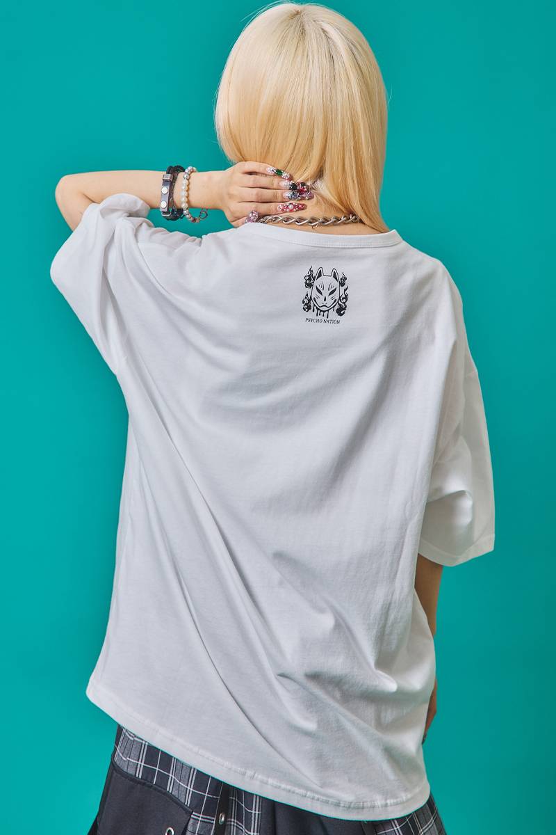寝田ルネ×PSYCHO NATION(サイコ・ネーション) キツネ着物Tee - White