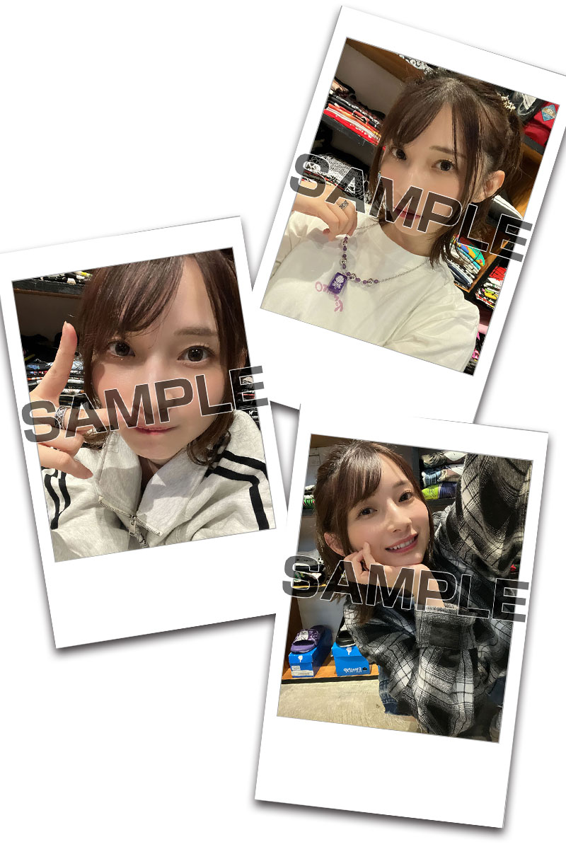 ①1注文でコラボ・アイテムを10,000円(税込)ご購入ごとにコラボ・アイテム着用ランダムチェキ風ブロマイドを1枚プレゼント