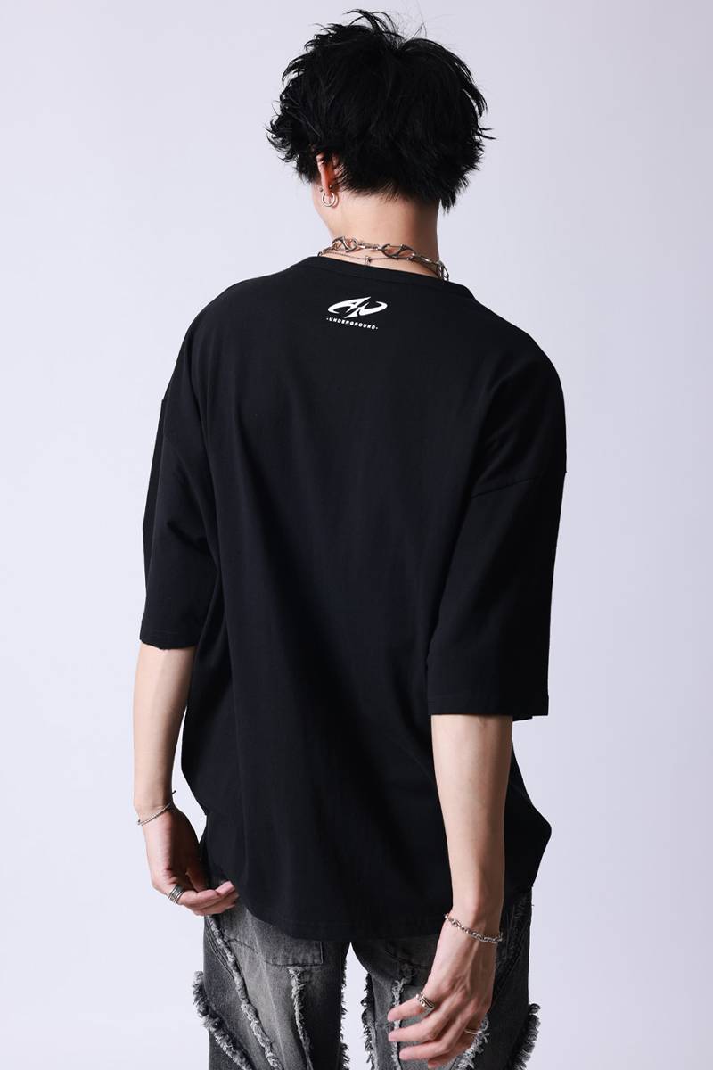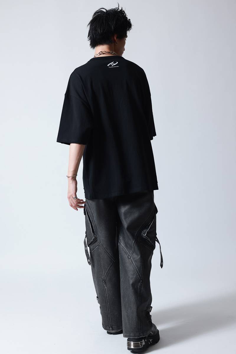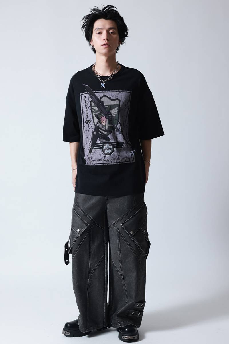 怪獣8号 × P.N UNDERGROUND 鳴海弦 ダメージ TEE - Black