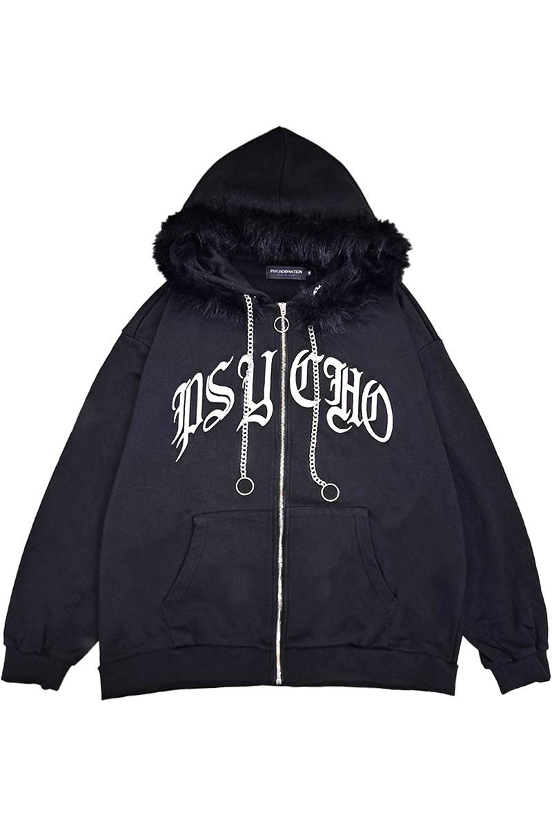 PSYCHO NATION(サイコ・ネーション) ファー脱着スパイダーZIPパーカー -Black