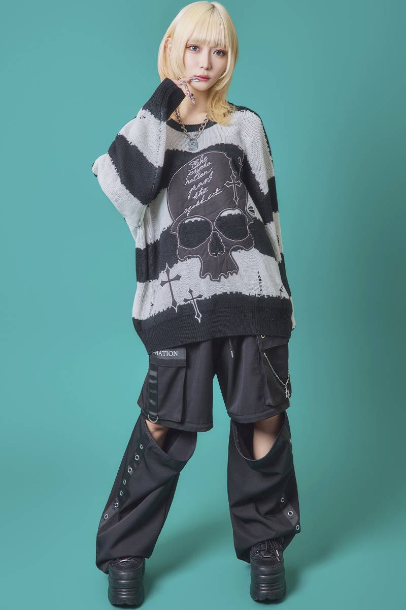 フロントに施されたスカル&クロスのパッチワークが印象的なニットトップス。