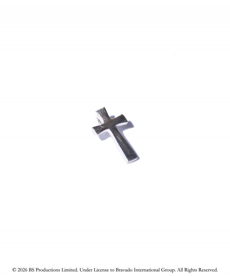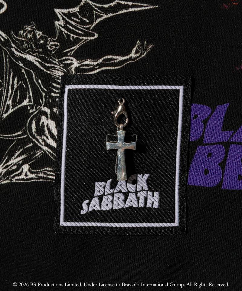『黒い安息日』『パラノイド』といった名盤のアートワークを中心に総柄を作成しました。インナー・ジャケットでOzzy Osbournが身に着ける十字架の輪郭をサンプリングし、シルバー925で贅沢に再構築し裾のタグに配置。商品にはチェーンも付属しており、アクセサリーとしての単体使いも可能。