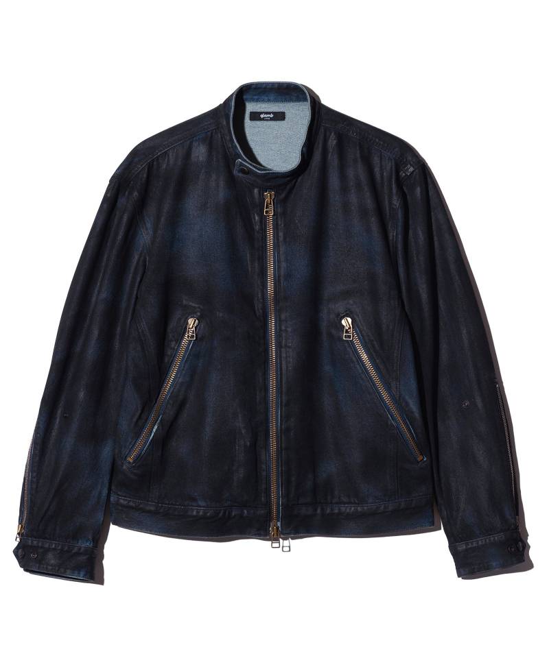 コンパクトなシルエットの中にライダースとデニムというglambの美学を詰め込んだDenim Riders Jacket。ショートレングスにまとめられたレギュラーシルエットのボディはシングルタイプのバイカー仕様。大ぶりなサイドポケットとフロント、袖口のジップはアンティーク調コッパーカラーのパーツであしらってアクセントにしています。テキスタイルに用いたのは