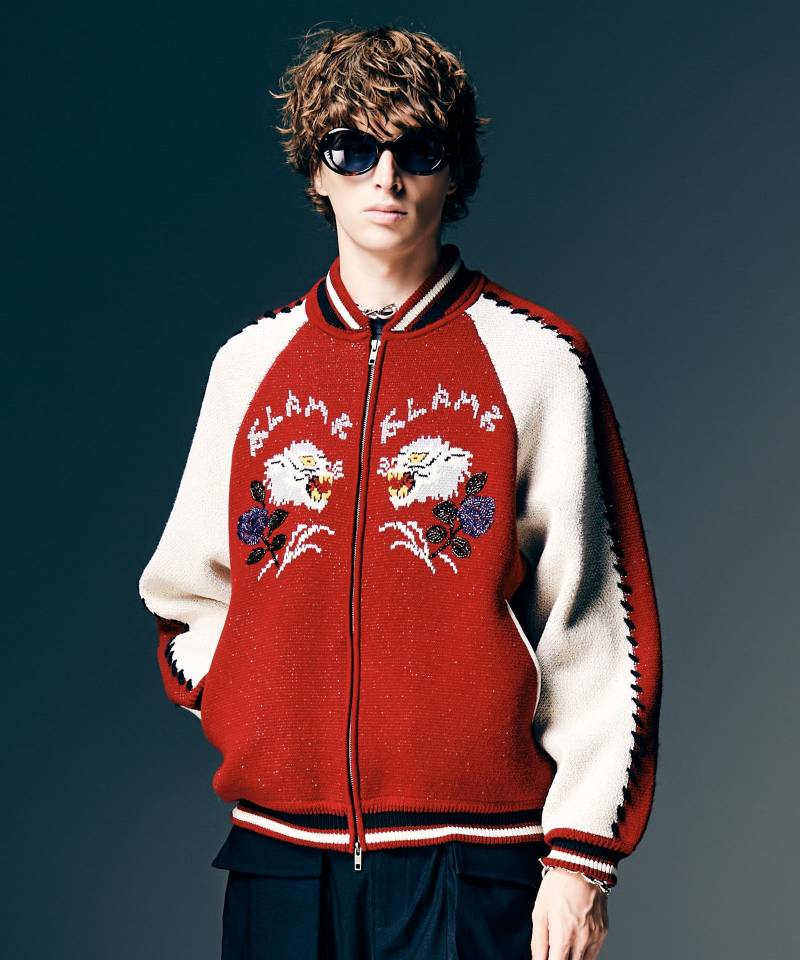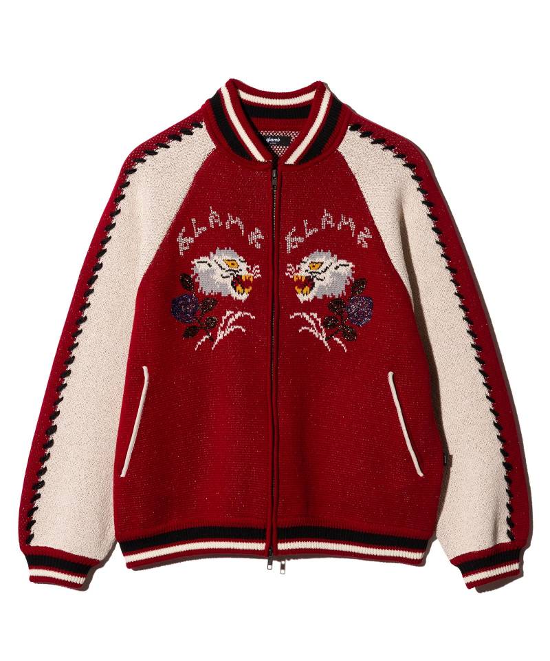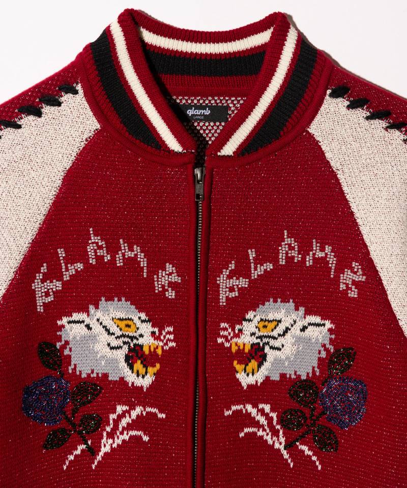 【予約商品】glamb(グラム) White Tiger Knit Ska Jumper / ホワイトタイガーニットスカジャンパー - Red