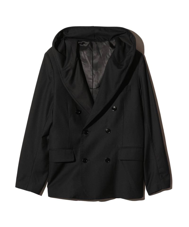 ダブルブレストジャケットに構築的なドレープワークを掛け合わせ、ドレスとストリートを融合したCarol Tailored Jacket。胸元から首回りを立体的に取り囲む襟のデザインはglambの定番ディテールである。