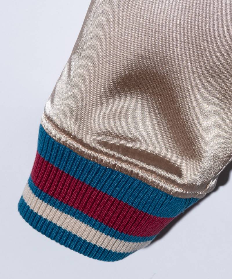 コンパクトなシルエットと艶やかな素材使いが往年のアウトサイダールックを彷彿とさせるShort Satin Jacket。着丈を短めにまとめたブルゾンタイプのボディはテキスタイルにサテン生地を使用。一見するとスカジャンのようでもありながら、首元はパイピングを施したレギュラーカラーでエッジのある佇まいにまとめています。モノトーンのBlackに対してBeigeは配色使いと、カラーバリエーションごとに異なるムードも本作の特徴。軽さある着心地を生かし、アウターのみならずシャツ感覚でもスタイリングいただけます。
