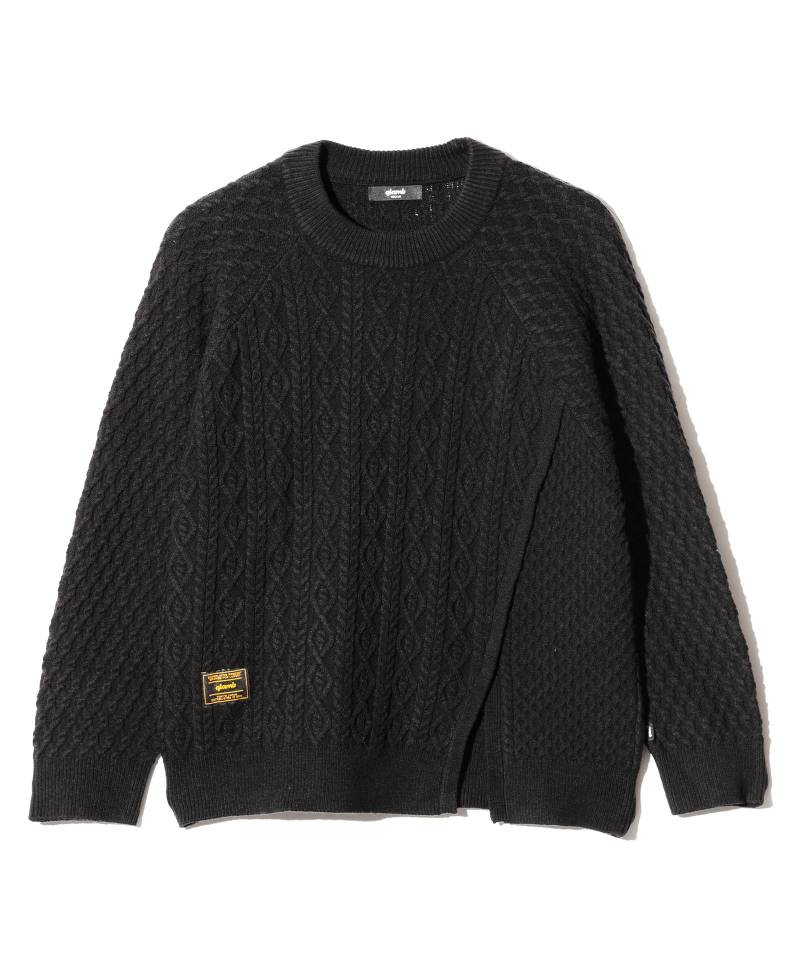 【予約商品】glamb(グラム) Asymmetry Cable Knit / アシンメトリーケーブルニット - Black