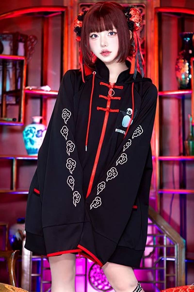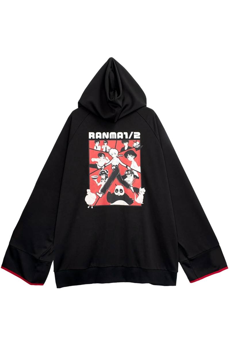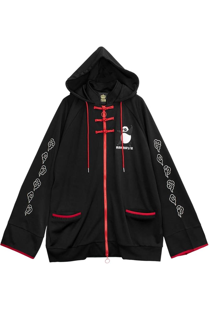 らんま1/2×LISTEN FLAVOR (リッスン・フレーバー) チャイナジャージパーカー - Black