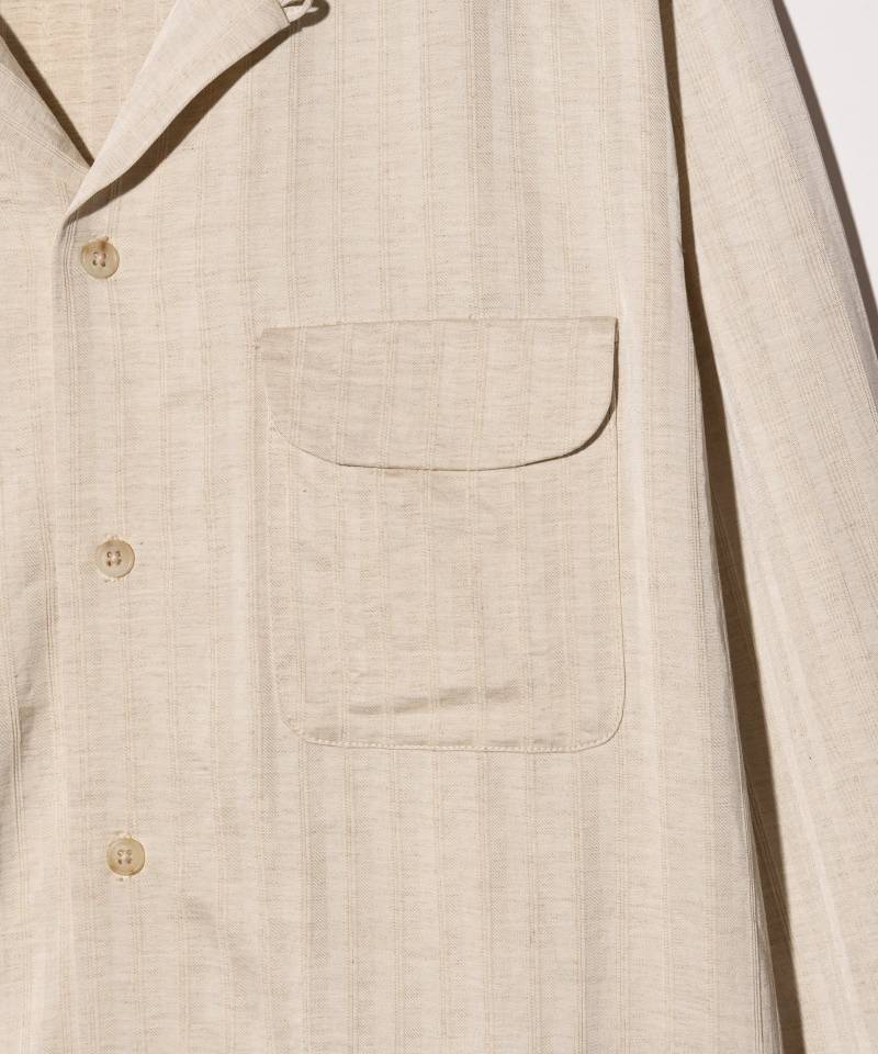 【予約商品】glamb(グラム)Stripe Jacquard Linen Shirt / ストライプジャガードリネンシャツ - White