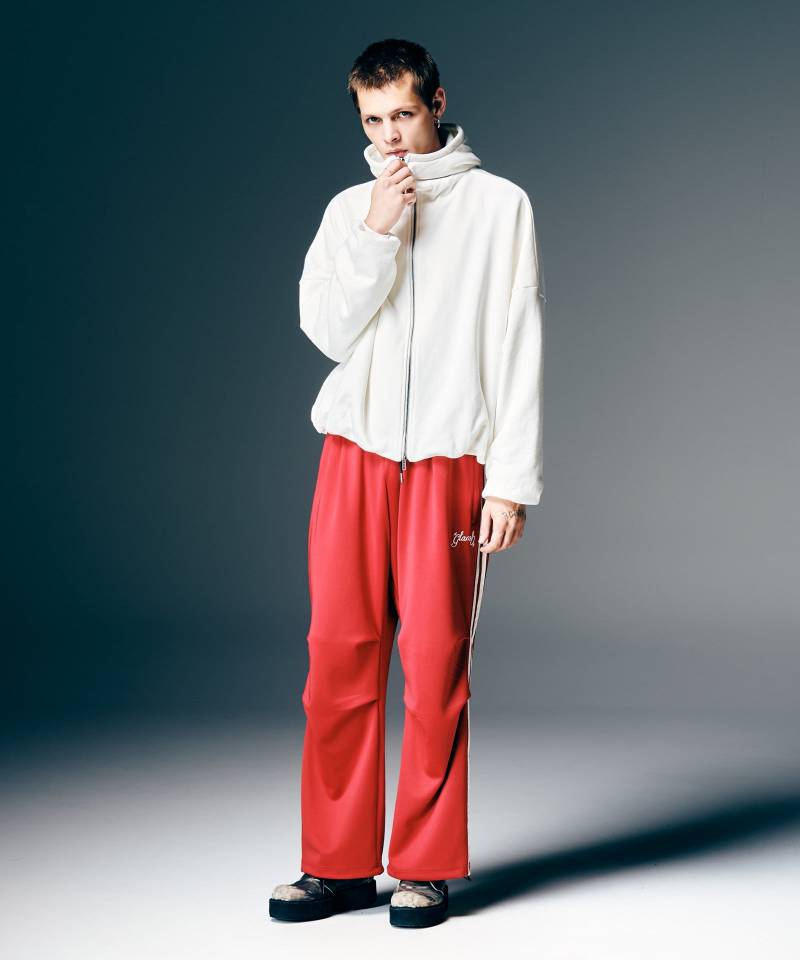 フーディのパターンを再考、イージーとエレガンスが同居する佇まいを作り上げたBalloon Zip Up Hoodie。裾と袖口にバルーン状のふくらみを持ったシルエットは、内側にリブをあしらい裏地から釣り上げる構造で形成。ドロップショルダーとオーバーサイズを掛け合わせ、ボリュームあるシルエットにまとめています。フルジップのボディからフードとハイネックを一体化させた造形もどこかフューチャリスティックな佇まい。テキスタイルには長めのループを備えた裏毛生地を使用し、軽やかな着心地をお楽しみいただけます。