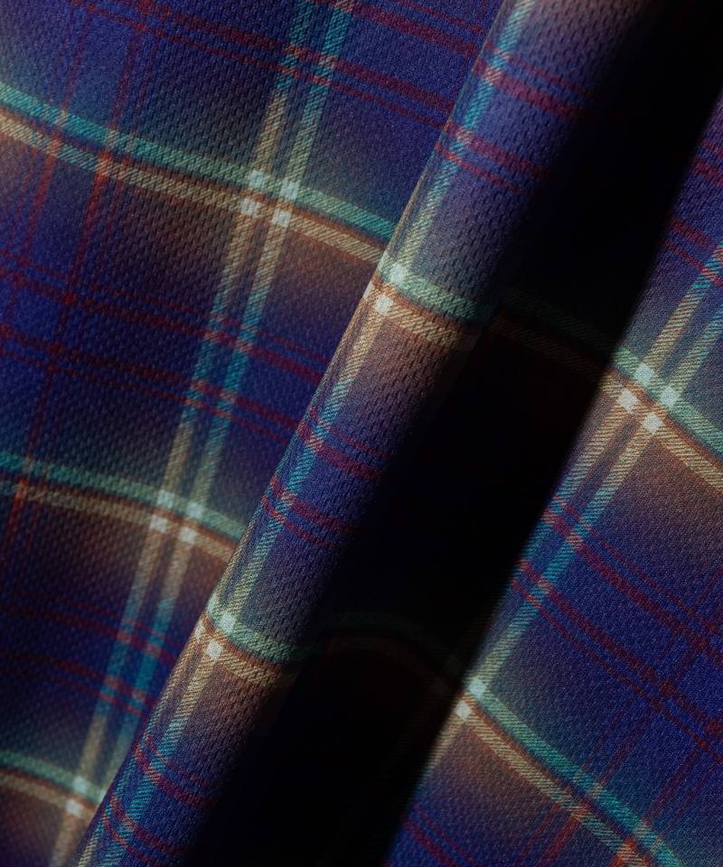 ストリートの定番モチーフを、テック素材との掛け合わせであらためて提案するTech Mesh Check Cutsew。テキスタイルに用いたのはドライな肌触りと通気性を備えたハイテクメッシュ生地。そこへレトロなカラーリングのオリジナルオンブレチェックをあしらうことで、グランジルックを現代的な機能性と合わせて提案します。サイジングは半袖Tシャツを重ねることも想定した、着丈を長めに設けたレギュラーシルエット。抜け感ある輪郭は合わせるボトムスを選ばずにスタイリングのバランスを整えます。