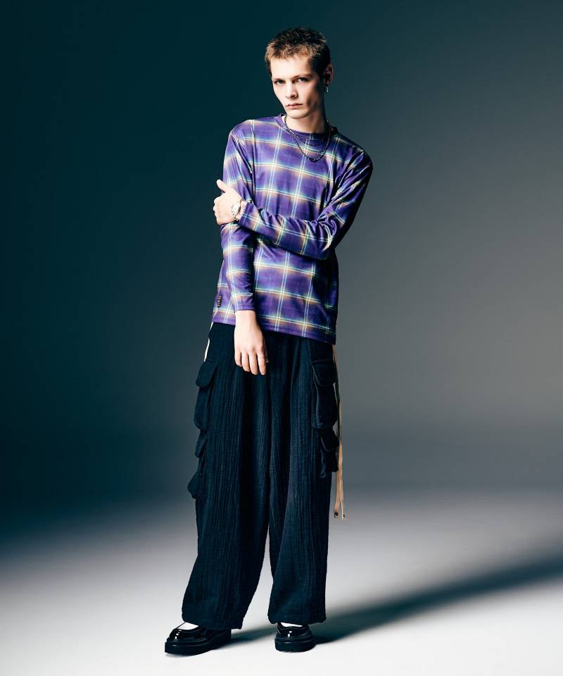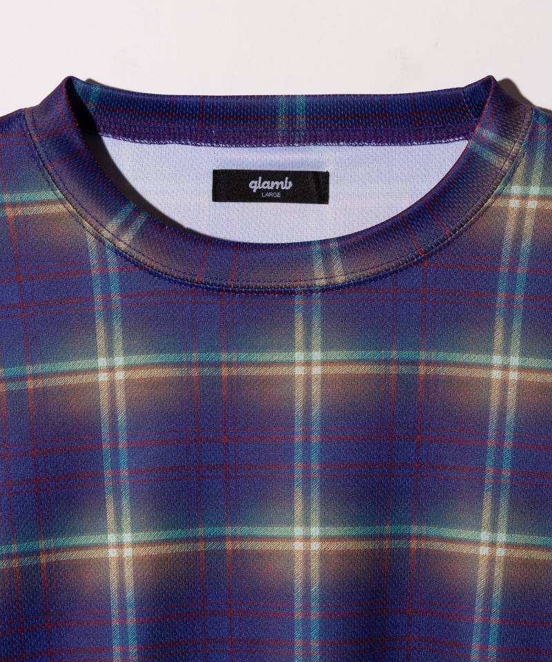 【予約商品】glamb(グラム)Tech Mesh Check Cutsew / テックメッシュチェックカットソー - Purple