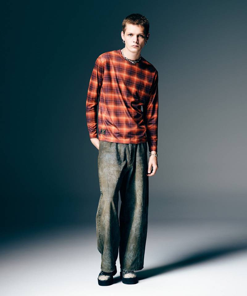 ストリートの定番モチーフを、テック素材との掛け合わせであらためて提案するTech Mesh Check Cutsew。テキスタイルに用いたのはドライな肌触りと通気性を備えたハイテクメッシュ生地。そこへレトロなカラーリングのオリジナルオンブレチェックをあしらうことで、グランジルックを現代的な機能性と合わせて提案します。サイジングは半袖Tシャツを重ねることも想定した、着丈を長めに設けたレギュラーシルエット。抜け感ある輪郭は合わせるボトムスを選ばずにスタイリングのバランスを整えます。