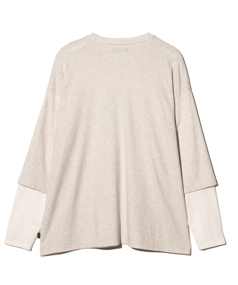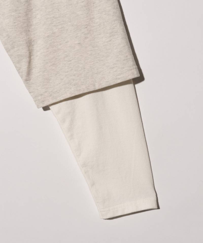 今春掲げるテーマ“Shadow of the Wind”の世界観をレイヤードスタイルに反映するBlow Layered Cutsew。フェイクレイヤードヴィジュアルはglambの得意とするディテールながら、本作ならではのディテールは7分袖のパーツ内側に配されたタブ。今季展開するストラップシリーズ“Blow”(*)を取り付けることが可能となっております。シルエットはドロップショルダーとワイドなフィッティングをかけ合わせたビッグシルエット。国内生産で作り上げた、程よい光沢としなやかな風合いを備えた40/2コーマ天竺のテキスタイルが上質な佇まいをもたらします。