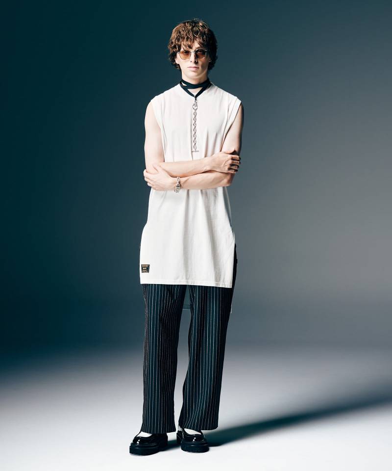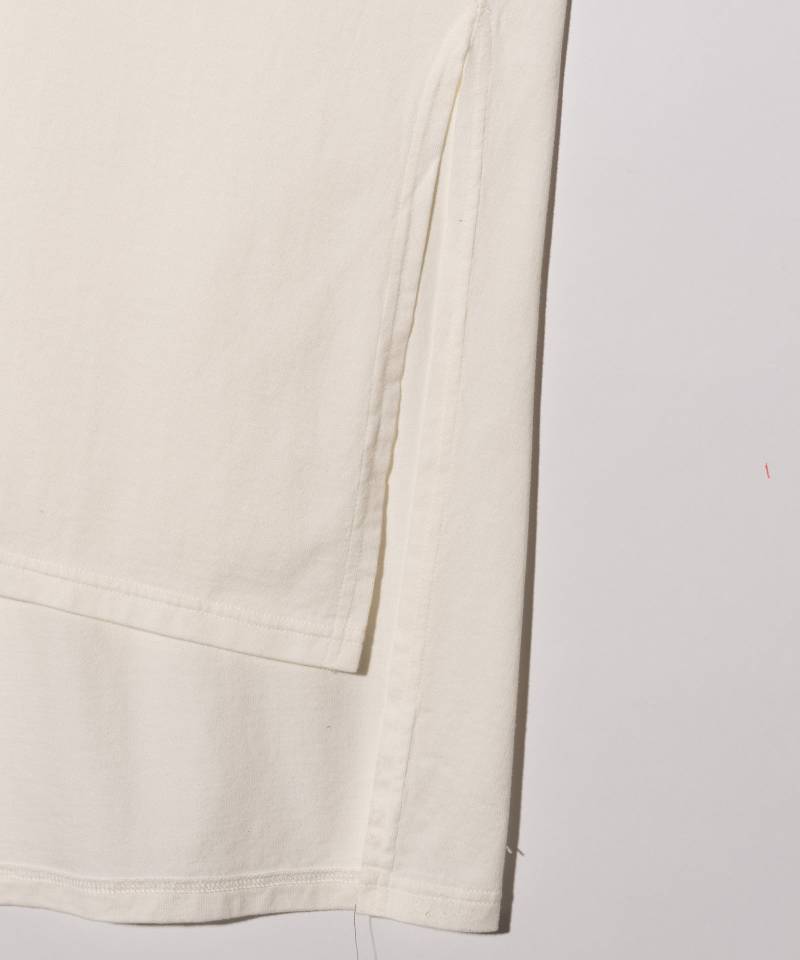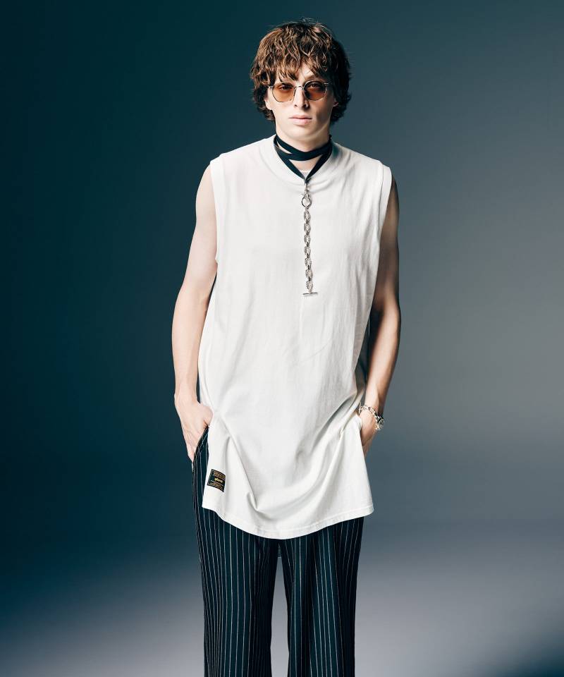 西洋の僧衣をインスピレーションにしながら、タンクトップを起点にしたスタイリングを提案するBlow Tank Top。ロング丈のボディは前後差を付けた着丈とサイドスリットで動きを演出。シャツやカットソーを上にまとうだけで完成されたトップスレイヤードを構築します。テキスタイルに使用したのは品のある光沢としなやかな肌触りを備える、MADE IN JAPANのクオリティあるコットン100%の40/2コーマ天竺。レイヤードの際の取り回しを考慮して身幅はレギュラーフィットに設定しています。