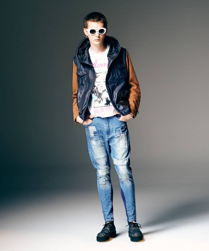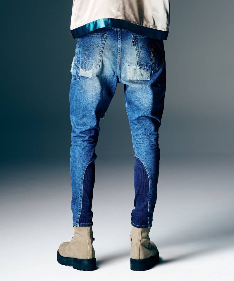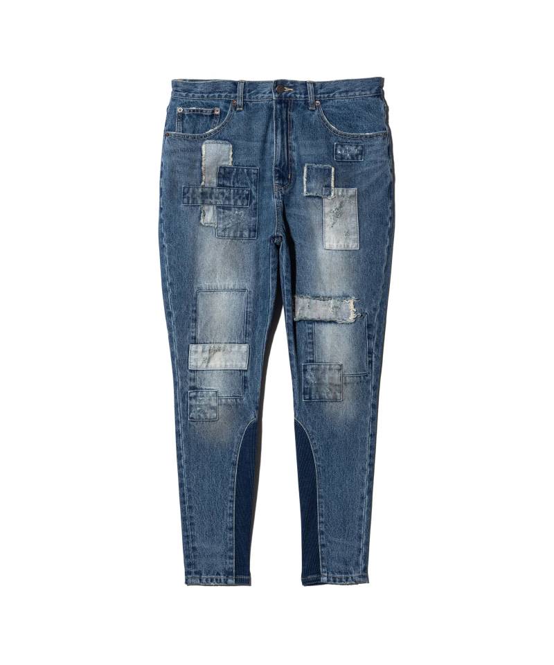 ブランドを代表する2つのデニムクラフトを掛け合わせたマスターピース的な面持ちで登場するUnplugged Poly Denim。シルエットはゆとりある腰回りから裾にかけてスキニーライクに変化するPoly Pantsのサルエルテーパード。10年以上にわたってブランドのデニムラインで人気を博し続ける定番シルエットとなっています。そこにあしらわれたのは重層的なパッチワークデザインとなる