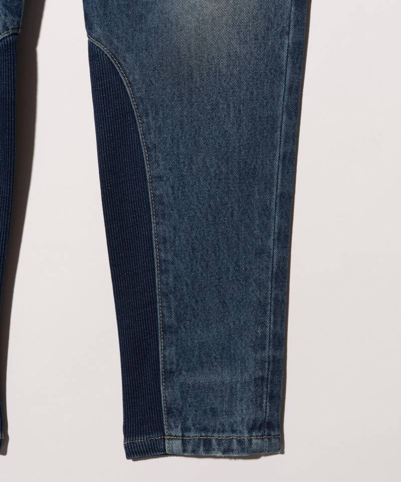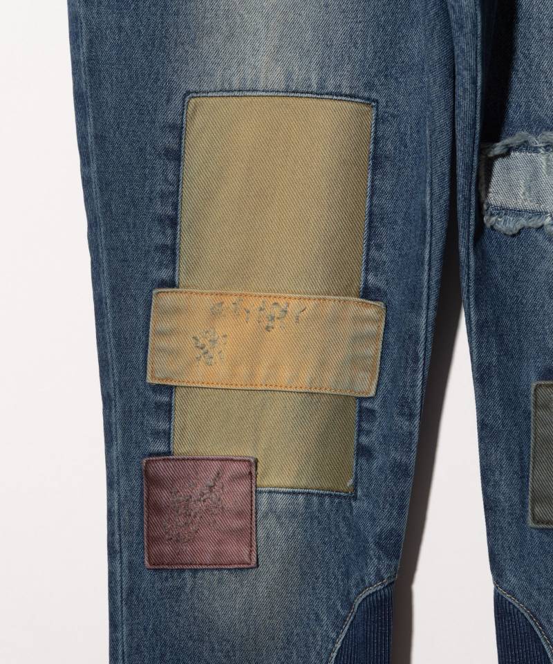 ブランドを代表する2つのデニムクラフトを掛け合わせたマスターピース的な面持ちで登場するUnplugged Poly Denim。シルエットはゆとりある腰回りから裾にかけてスキニーライクに変化するPoly Pantsのサルエルテーパード。10年以上にわたってブランドのデニムラインで人気を博し続ける定番シルエットとなっています。そこにあしらわれたのは重層的なパッチワークデザインとなる
