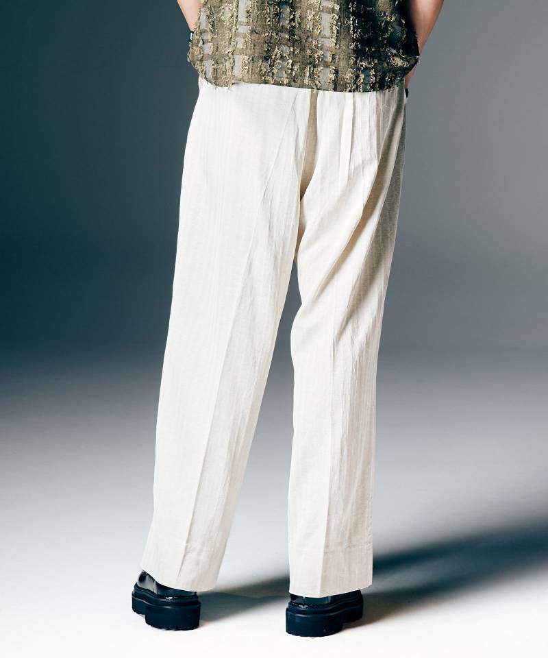 【予約商品】glamb(グラム) Stripe Jacquard Linen Pants / ストライプジャガードリネンパンツ - White