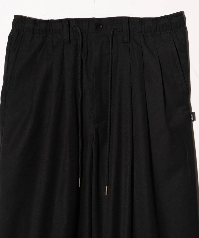 スラックスにブランドならではの自由なスポーツミックスを掛け合わせたAdjustable Balloon Slacks。テキスタイルにレーヨン混の落ち感あるスーツ生地を用いながら、ボディは左右6本ものタックでバルーン状に構築したバギーシルエットに。ウエストのドローコード仕様に加え、ゴム仕様の裾はスピンドルで幅調整が可能となっており、シチュエーションやコンディションに合わせて着心地をアレンジいただけます。