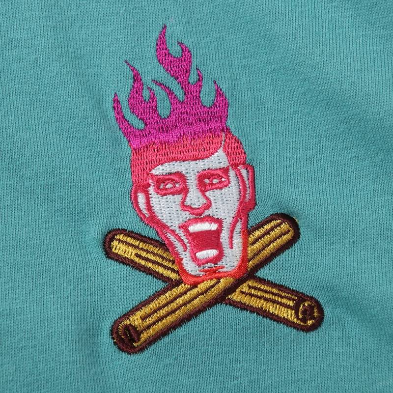 【予約商品】PUNK DRUNKERS (パンク・ドランカーズ) [PDSxサンゾー工務店]焚き火刺繍TEE - H.GREEN