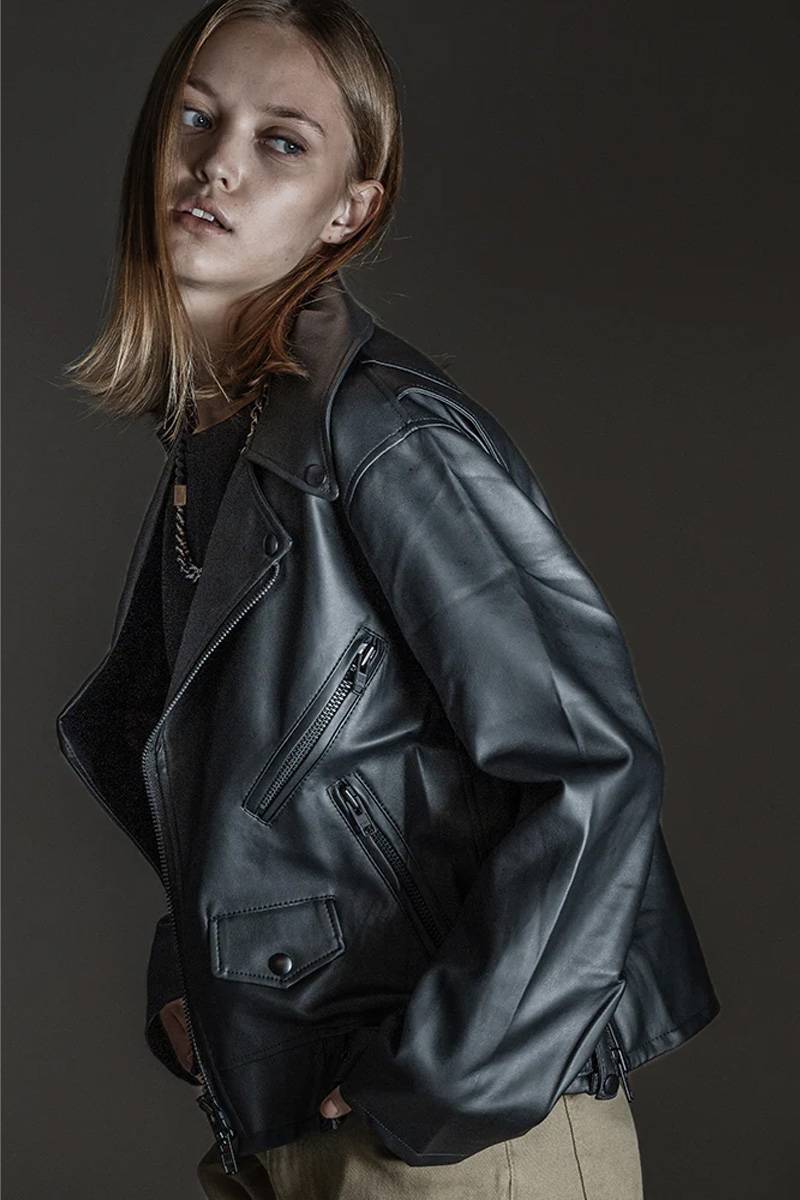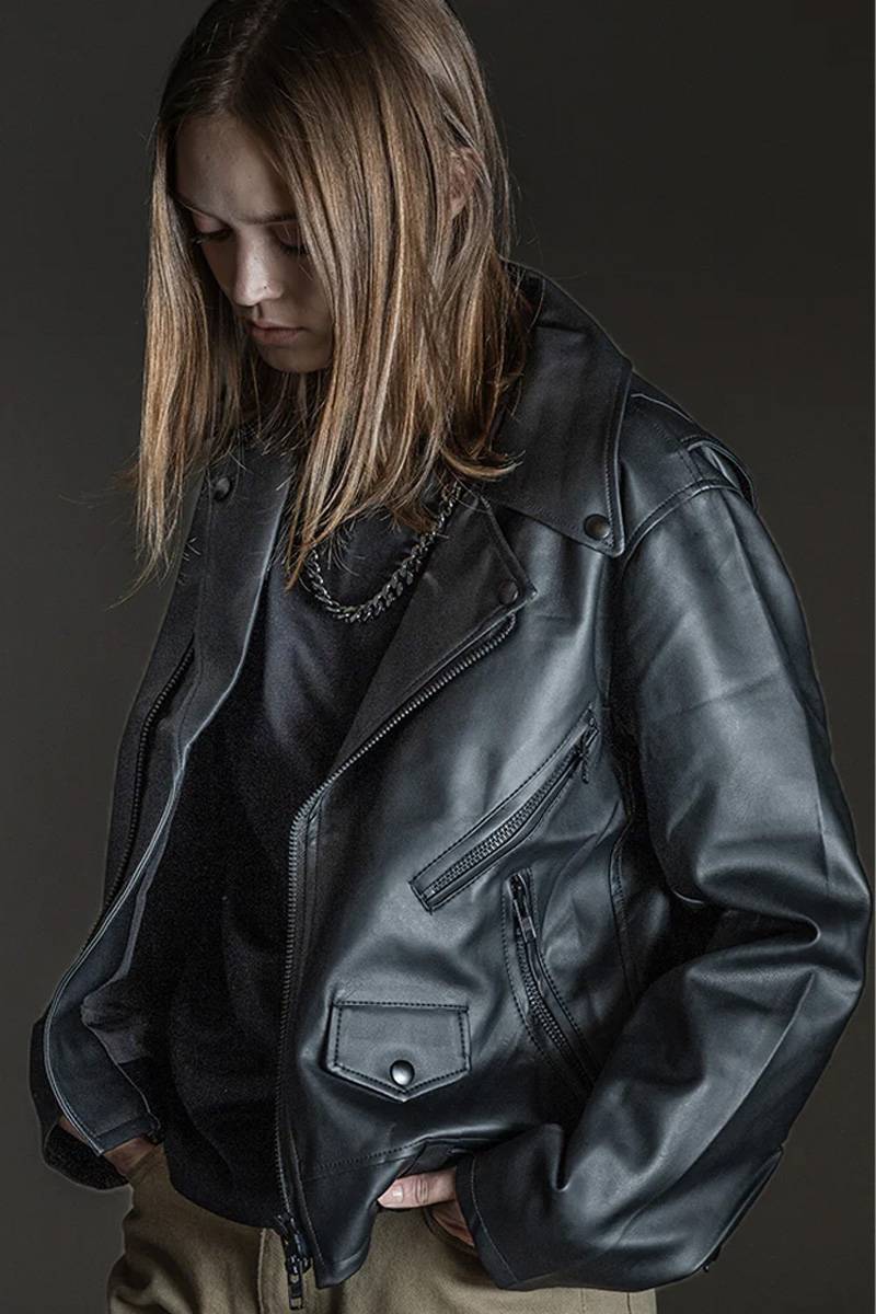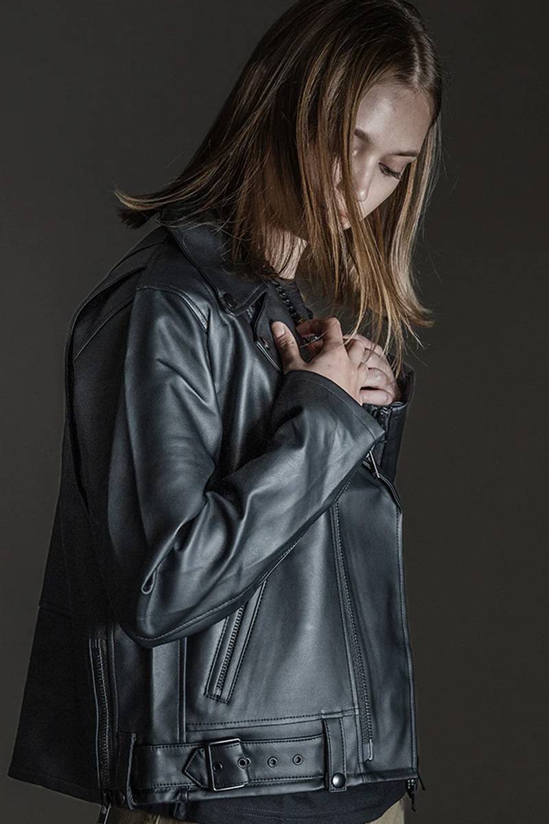 着丈をアシンメトリーにする事でインナーとのコラボレーションを楽しんで頂けます。