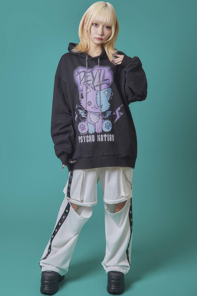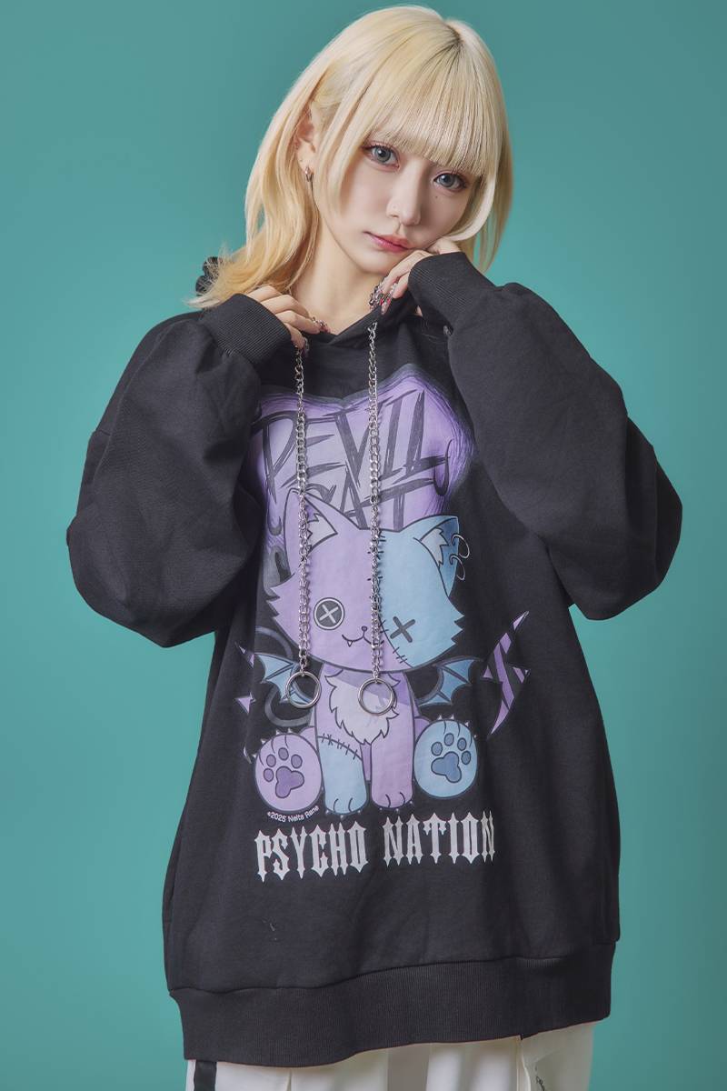 寝田ルネ×PSYCHO NATION(サイコ・ネーション) DEVIL CATパーカー - Black