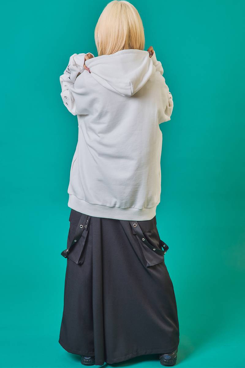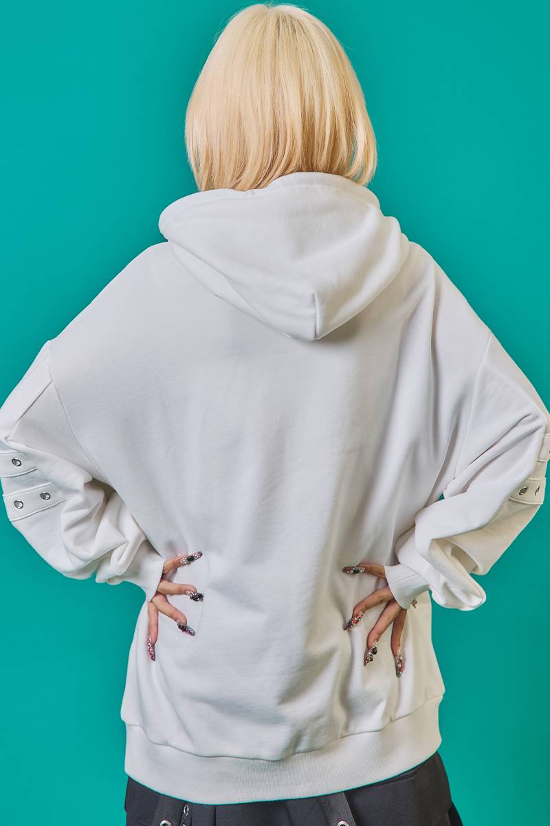 袖にはハトメラインとクロスプリントを配置してエッジの効いたディテールがポイントです。