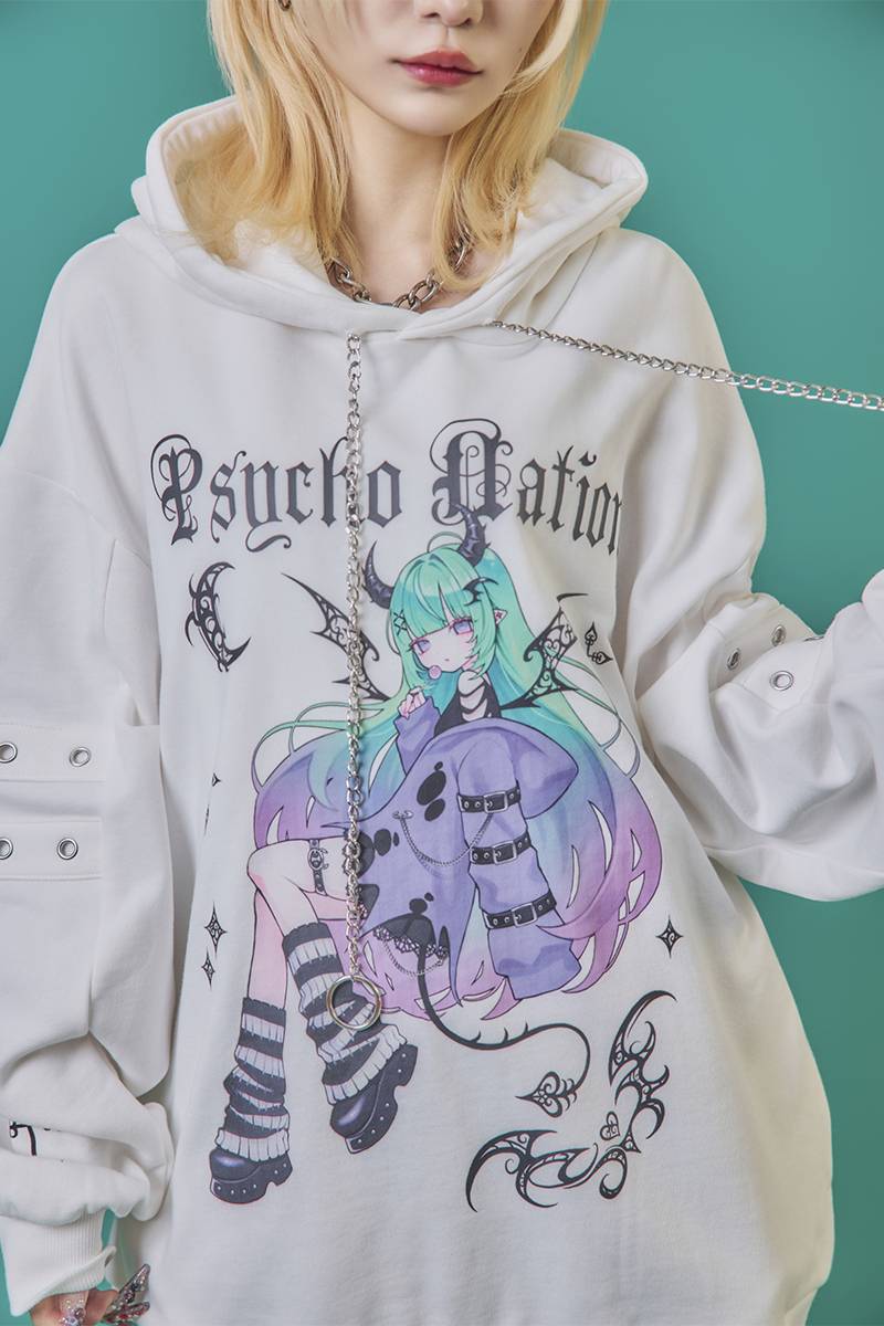 寝田ルネ×PSYCHO NATION(サイコ・ネーション) DEVIL パーカー - White