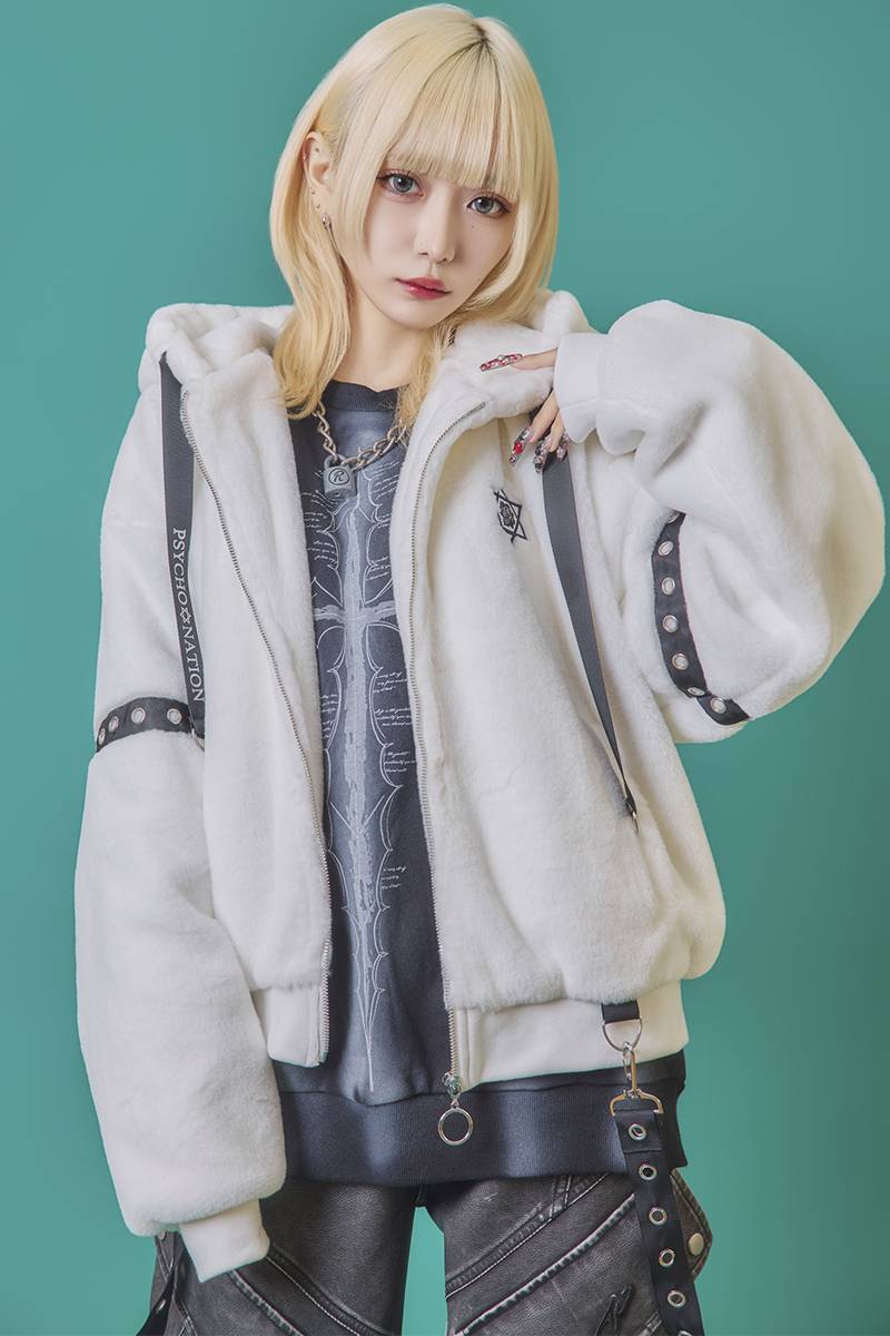 PSYCHO NATION(サイコ・ネーション) トライバルクロス ファーフードブルゾン - White