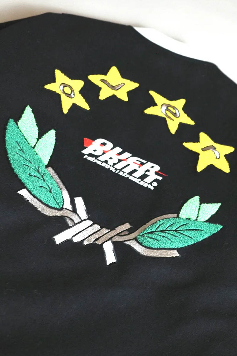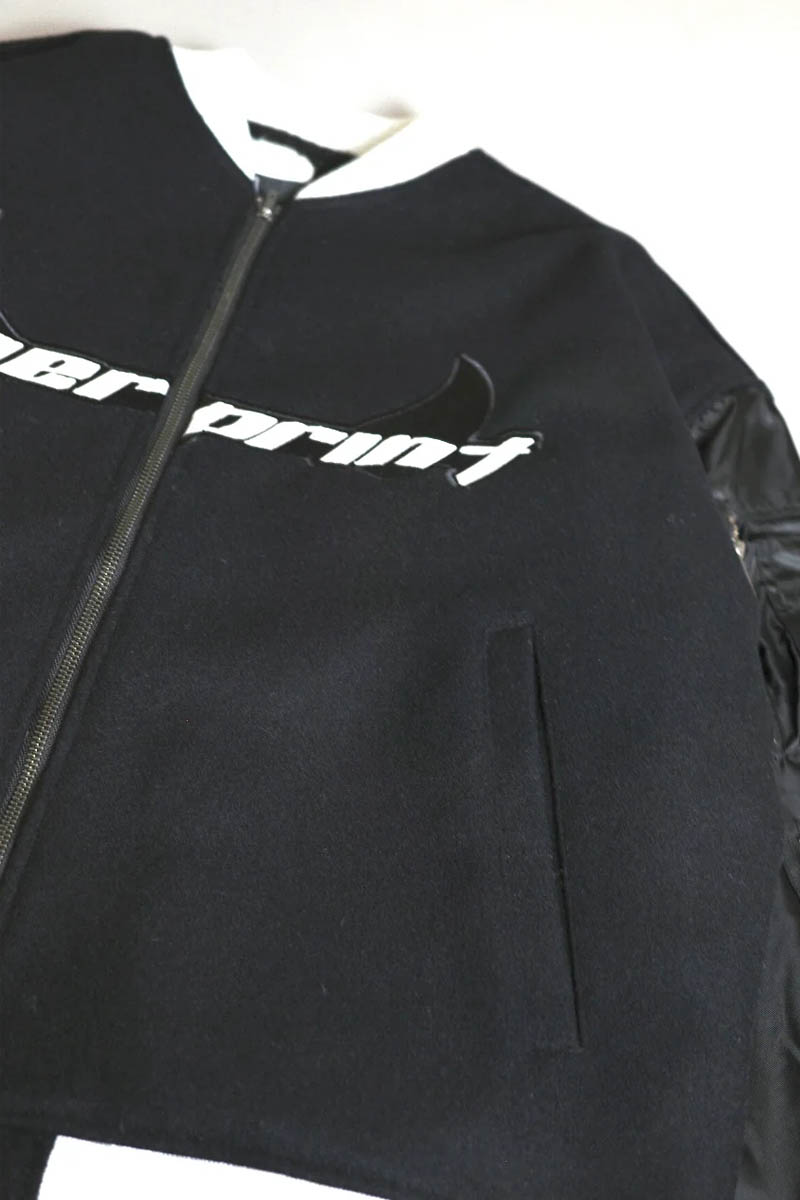 ウールメルトン生地、高密度サテンによるデザイナーのアメカジ愛を詰め込んだスタジャンをドッキングしたようなデザインのMA-1ジャケット。