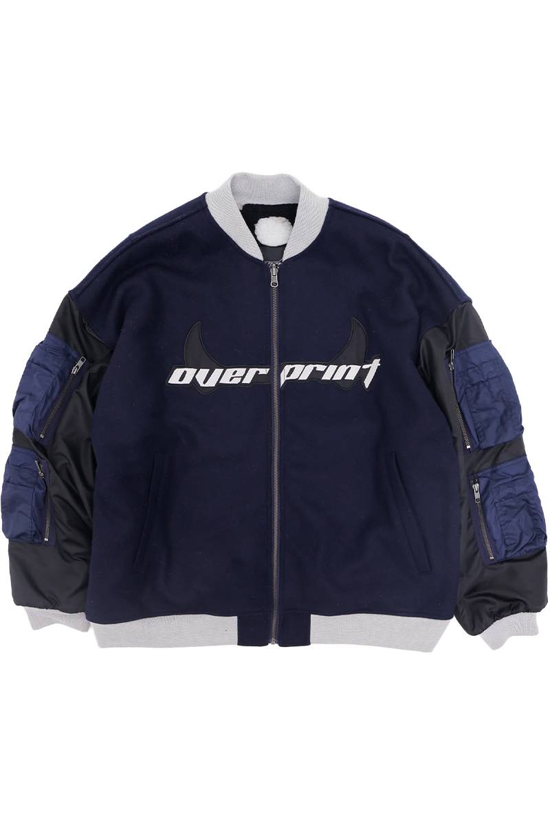 over print (オーバープリント) Melton MA-1 jacket - Black/Navy