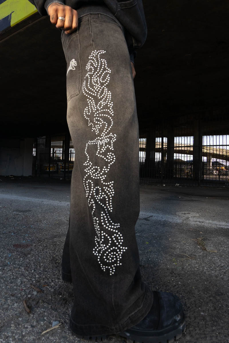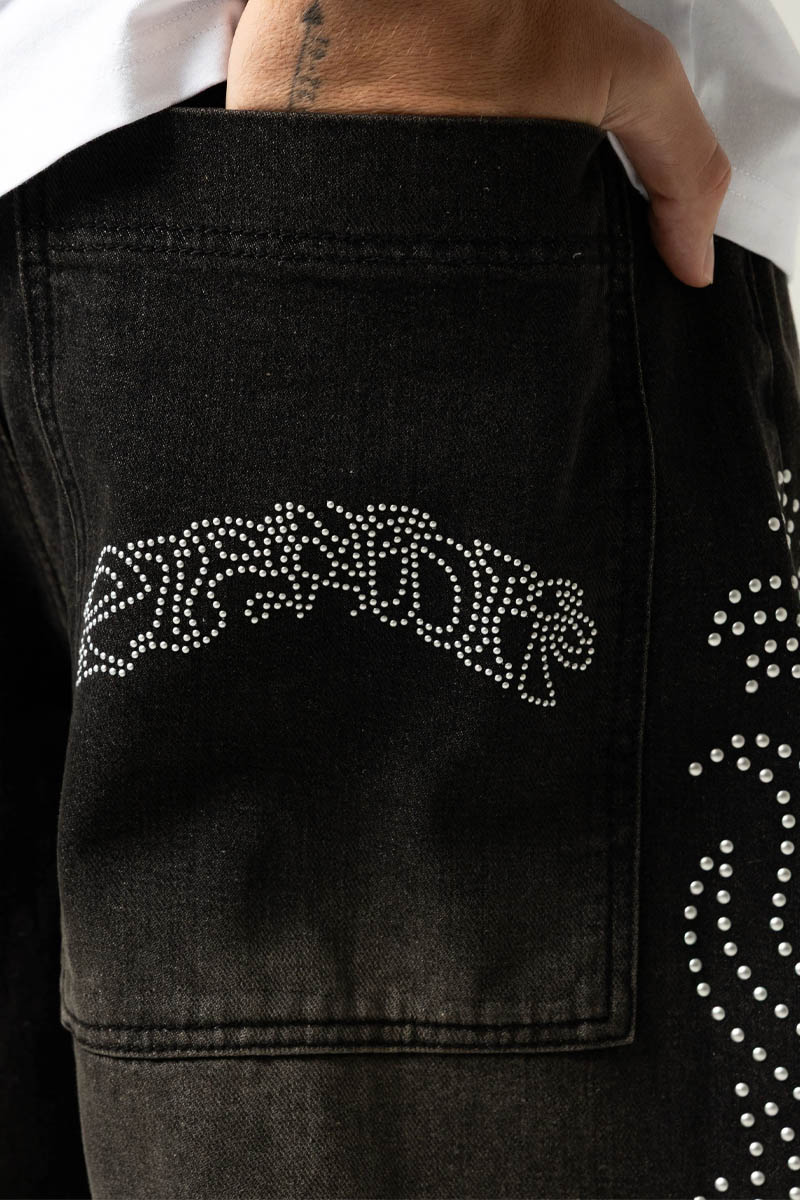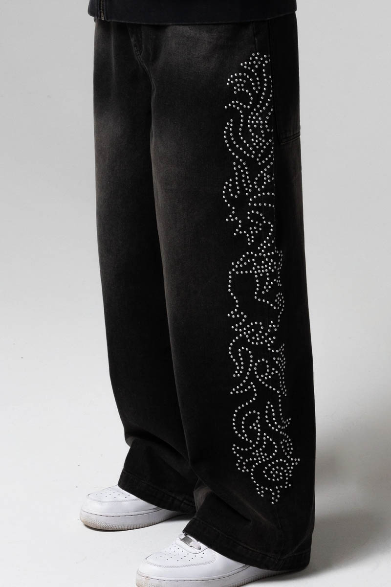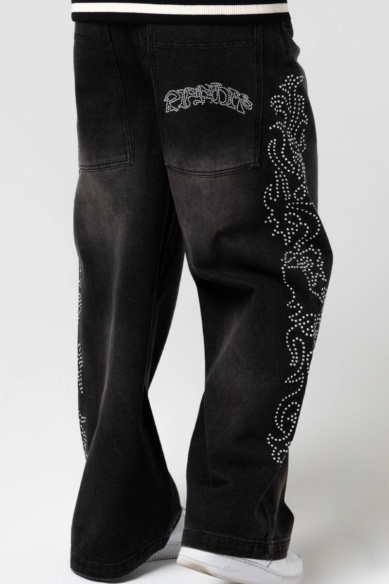 RIPNDIP (リップンディップ) Pretty Flacko Extra Wide Leg Pants - Black Vintage Wash Denim