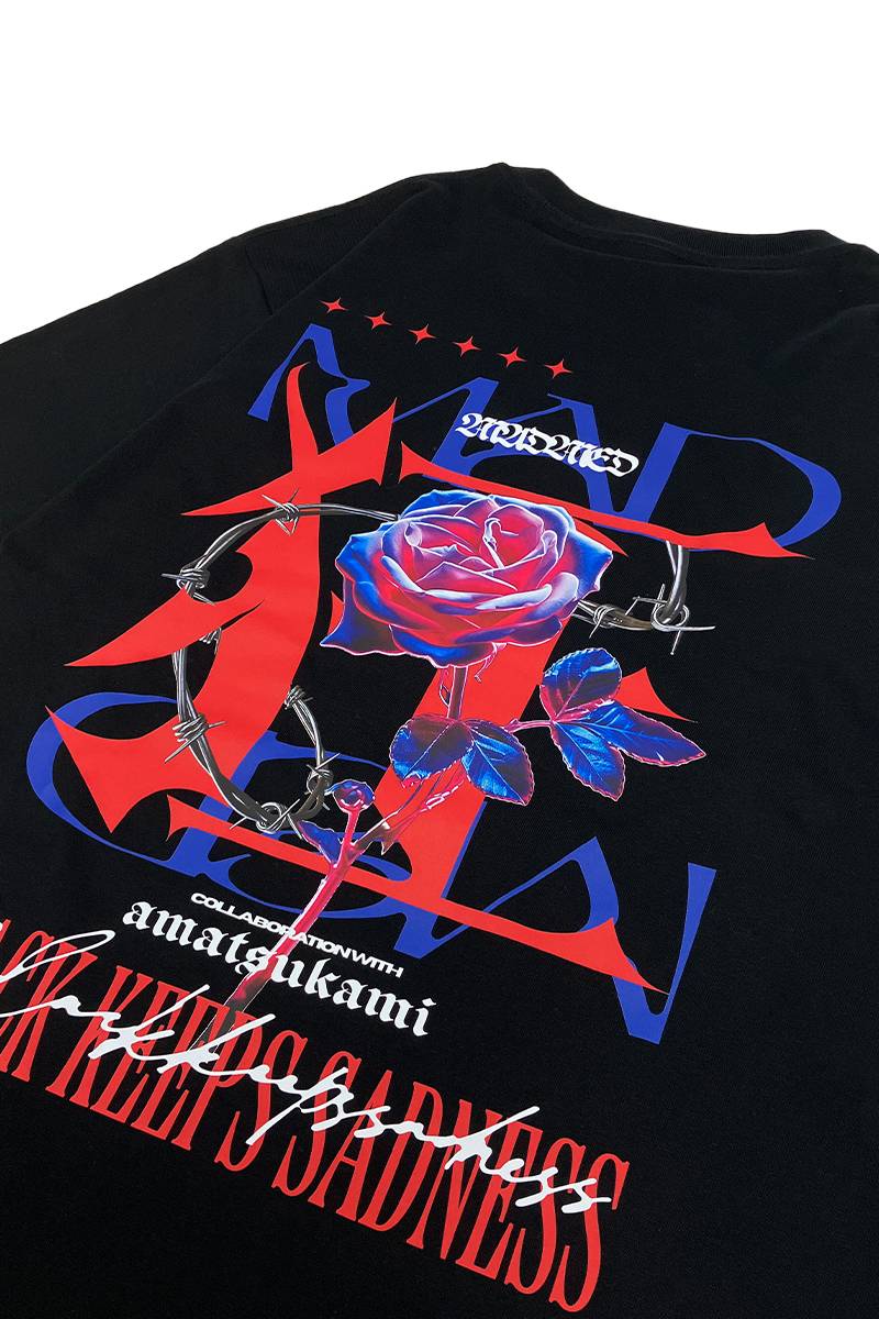フロントはアマツカミの象徴の薔薇と本コラボ・オリジナル・ロゴを胸元に配置。