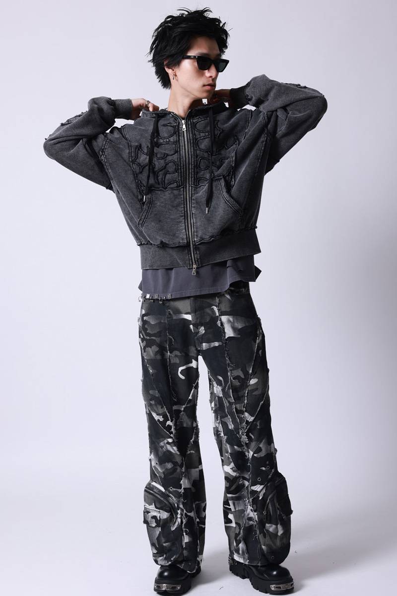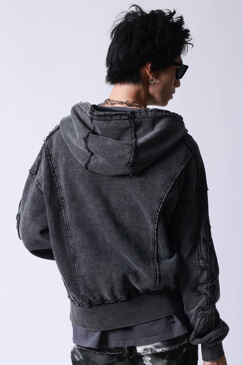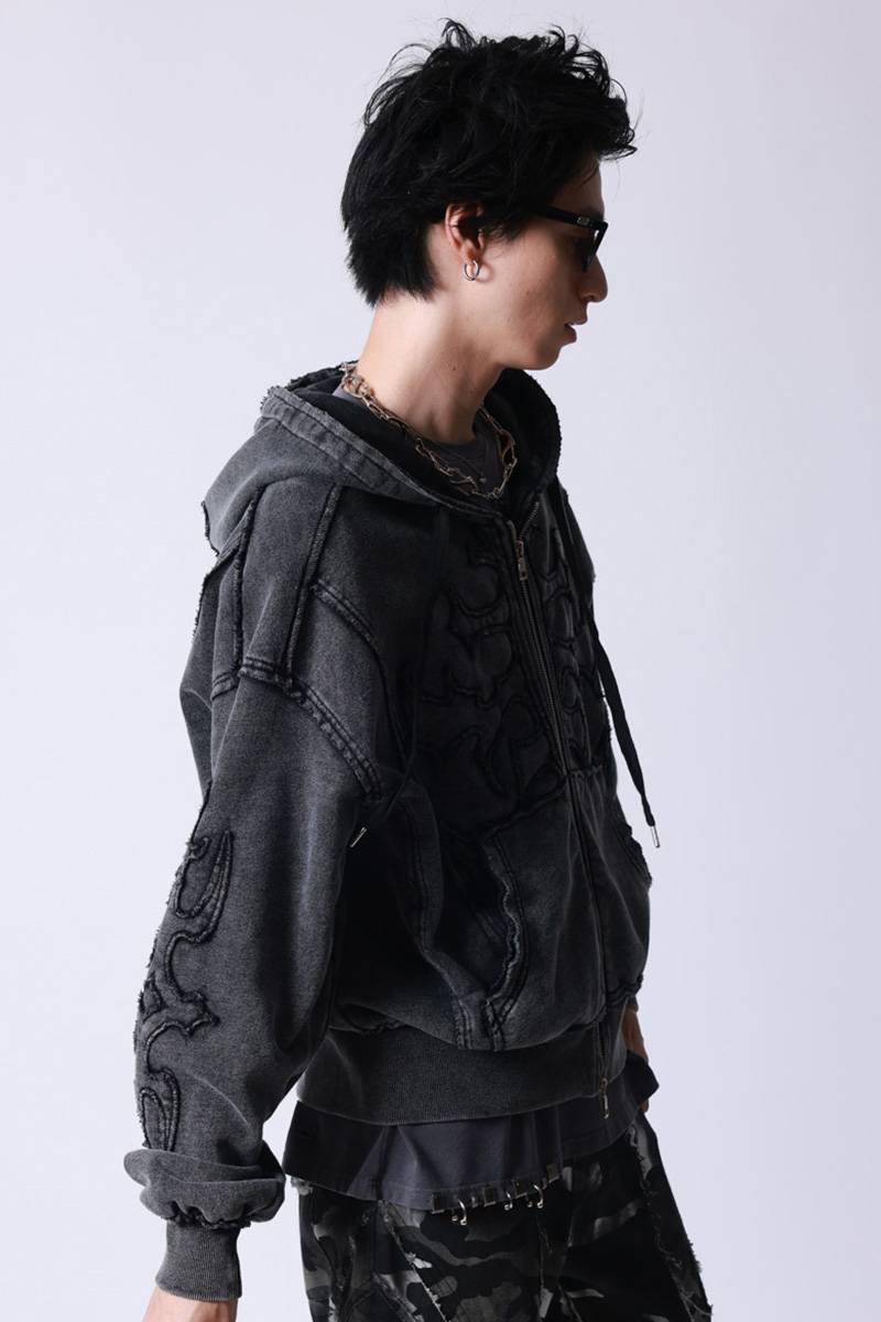 P.N UNDERGROUND(サイコ・ネーション・アンダーグラウンド) アップリケ刺繍ケミカルZIPパーカー