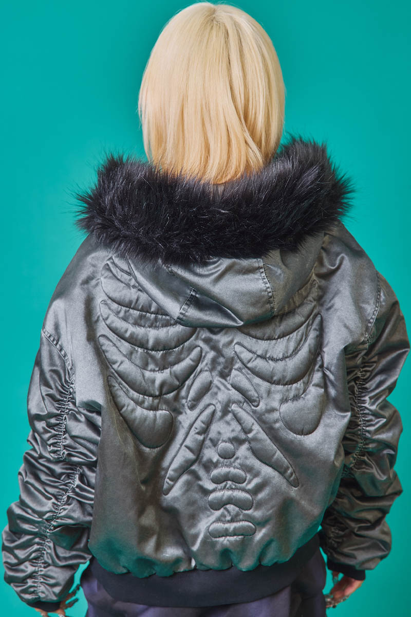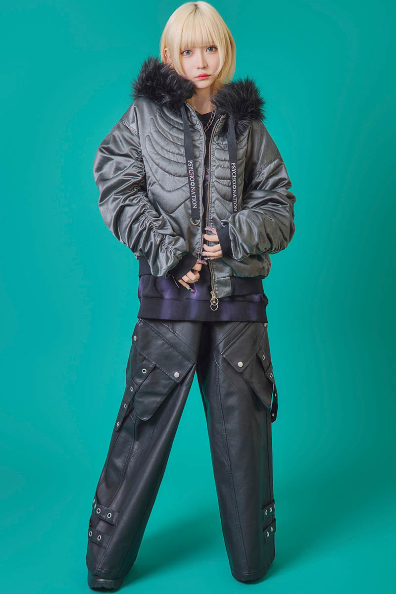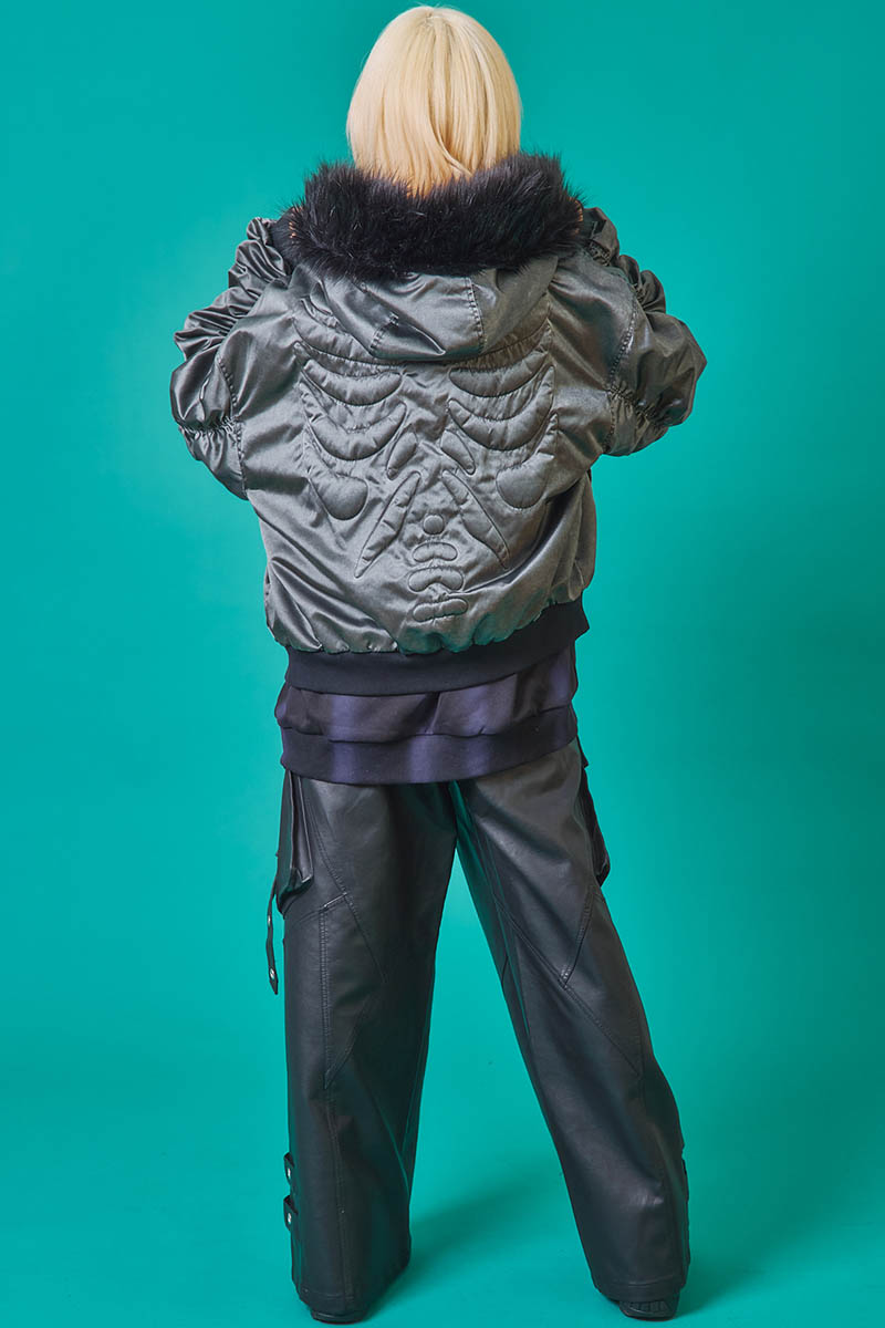PSYCHO NATION(サイコ・ネーション) ファー脱着ボーンフードブルゾン - Gray