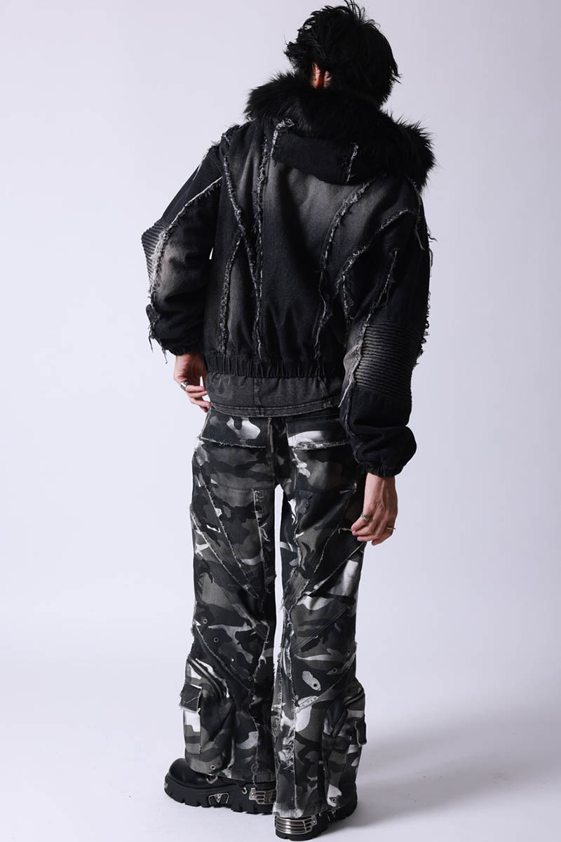 P.N UNDERGROUND(サイコ・ネーション・アンダーグラウンド) ファー脱着デニムフードブルゾン - Black