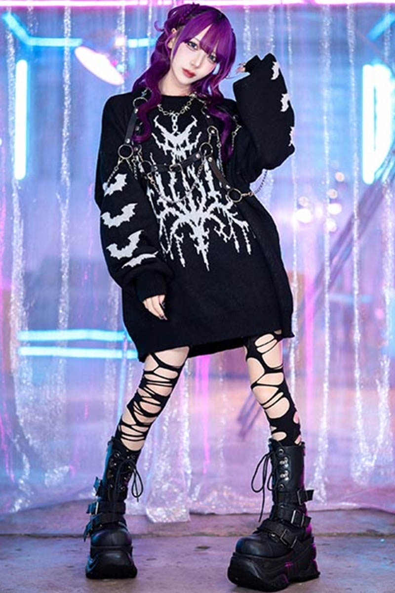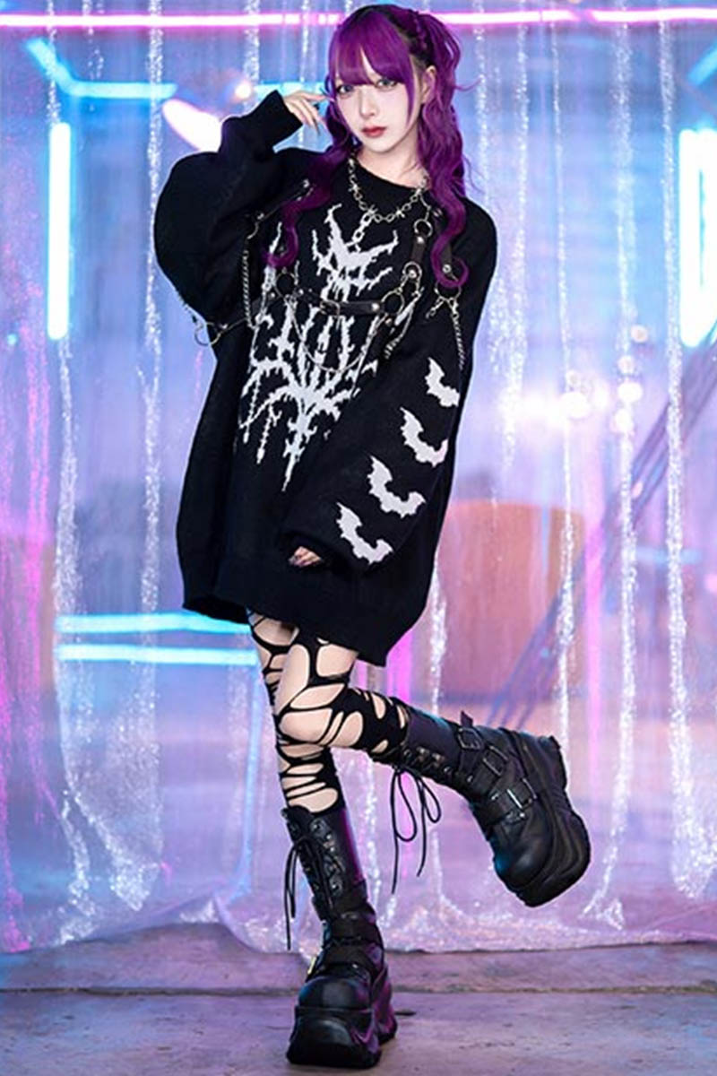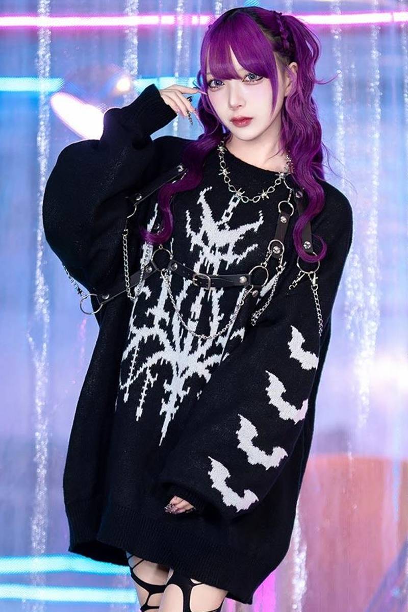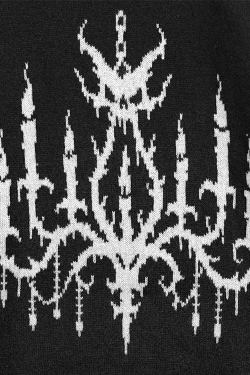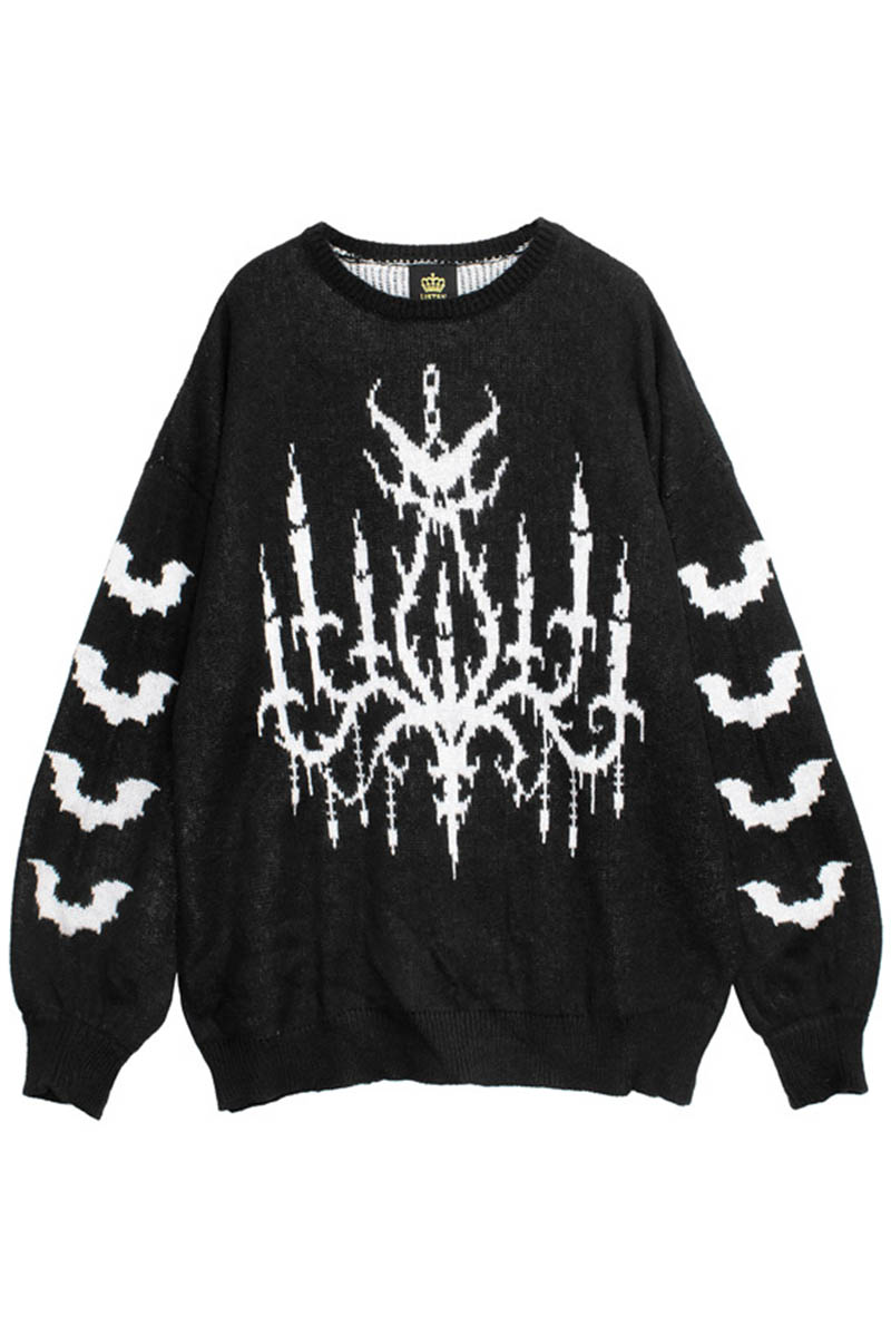 魔界の闇夜を照らす妖しげなシャンデリア、そでに舞うコウモリがミステリアスなニットプルオーバーが登場!